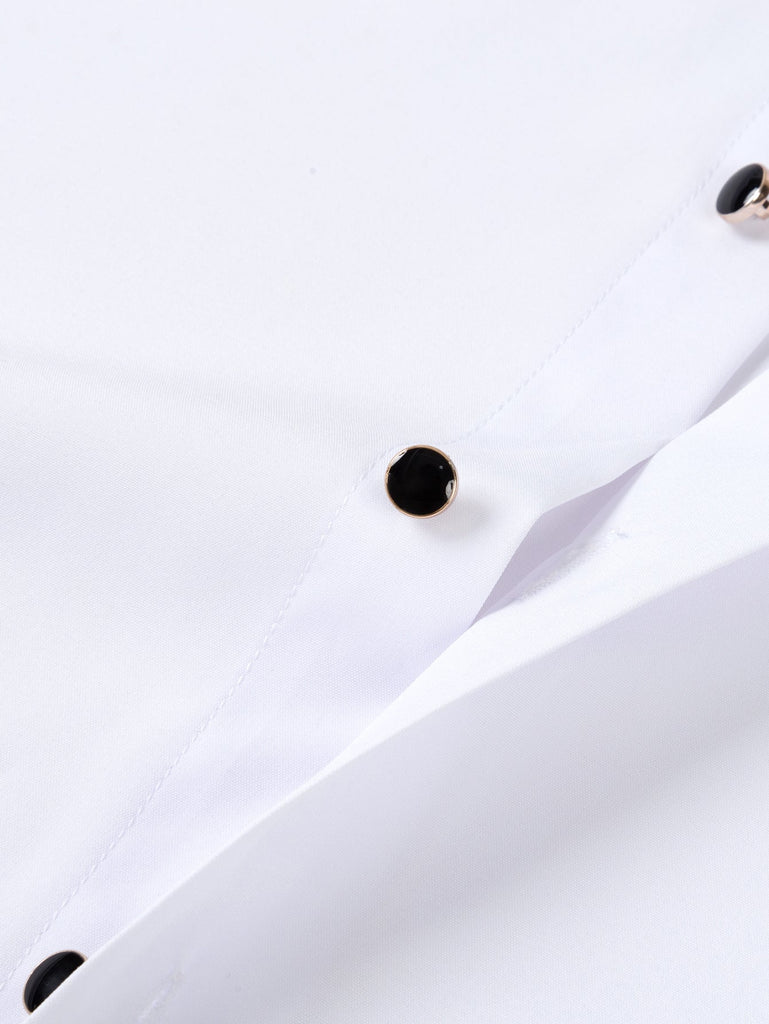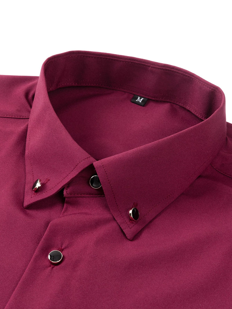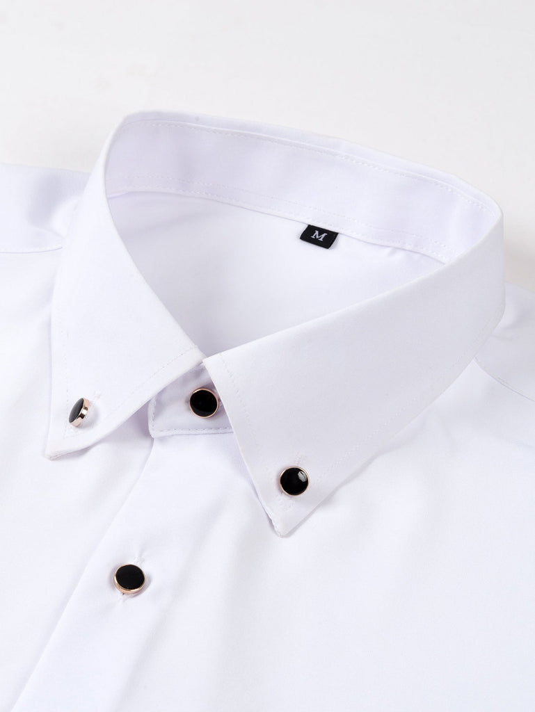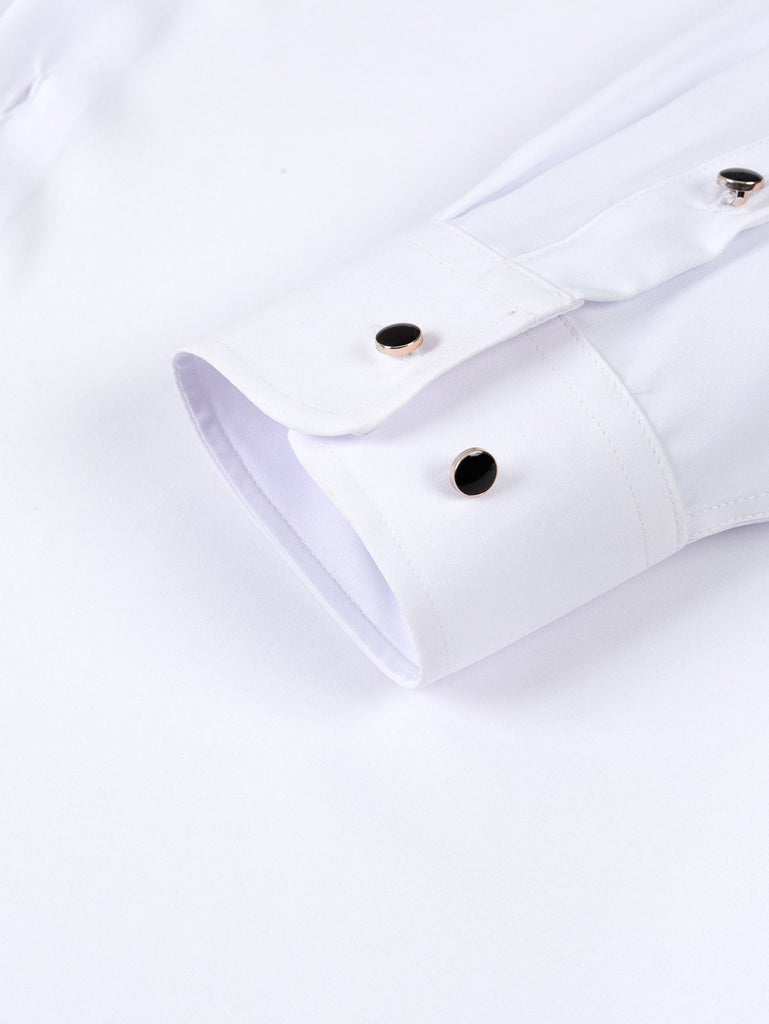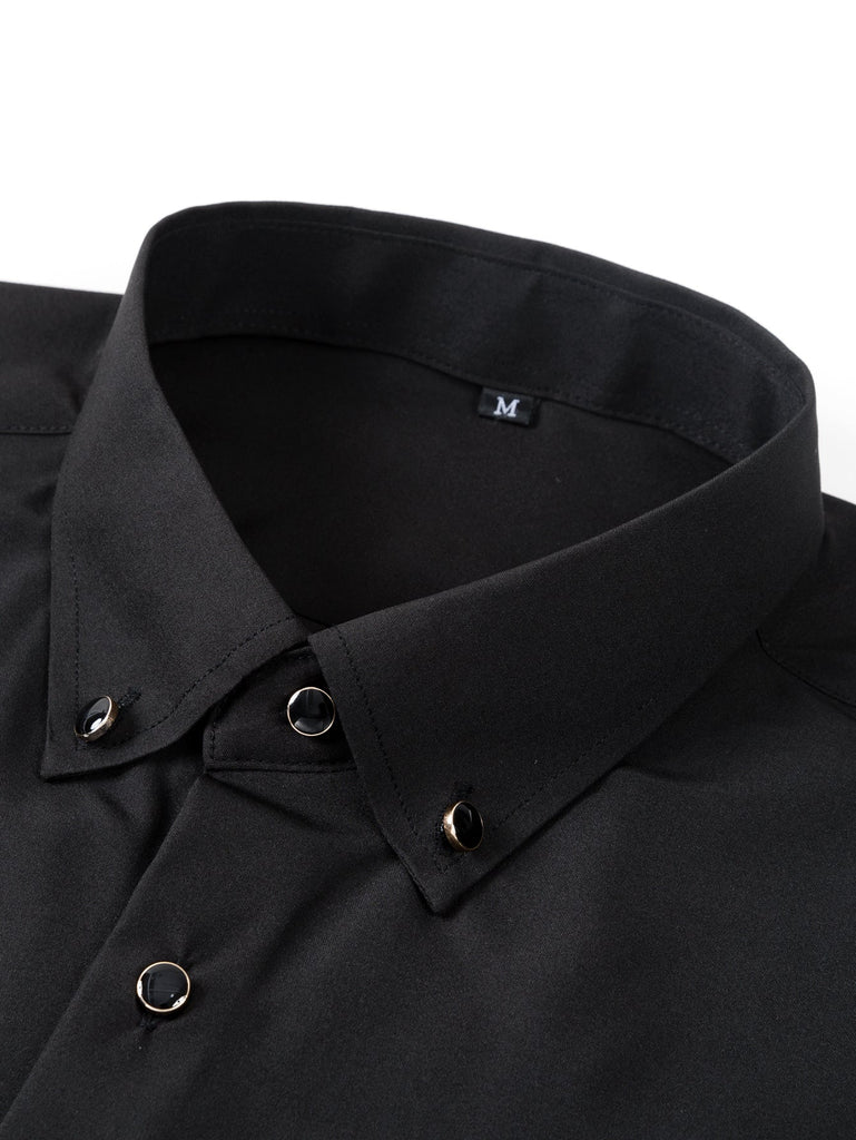 Long Sleeve Dress Shirt with Faux Gemstone Metal Rim Buttons