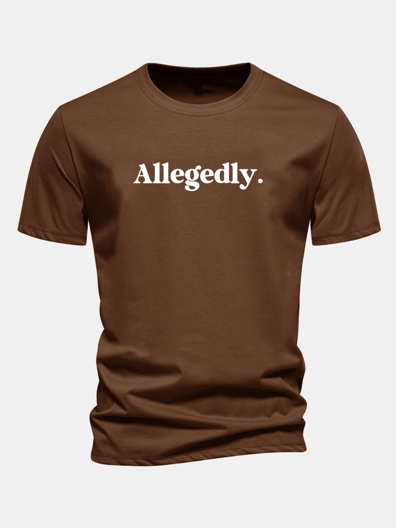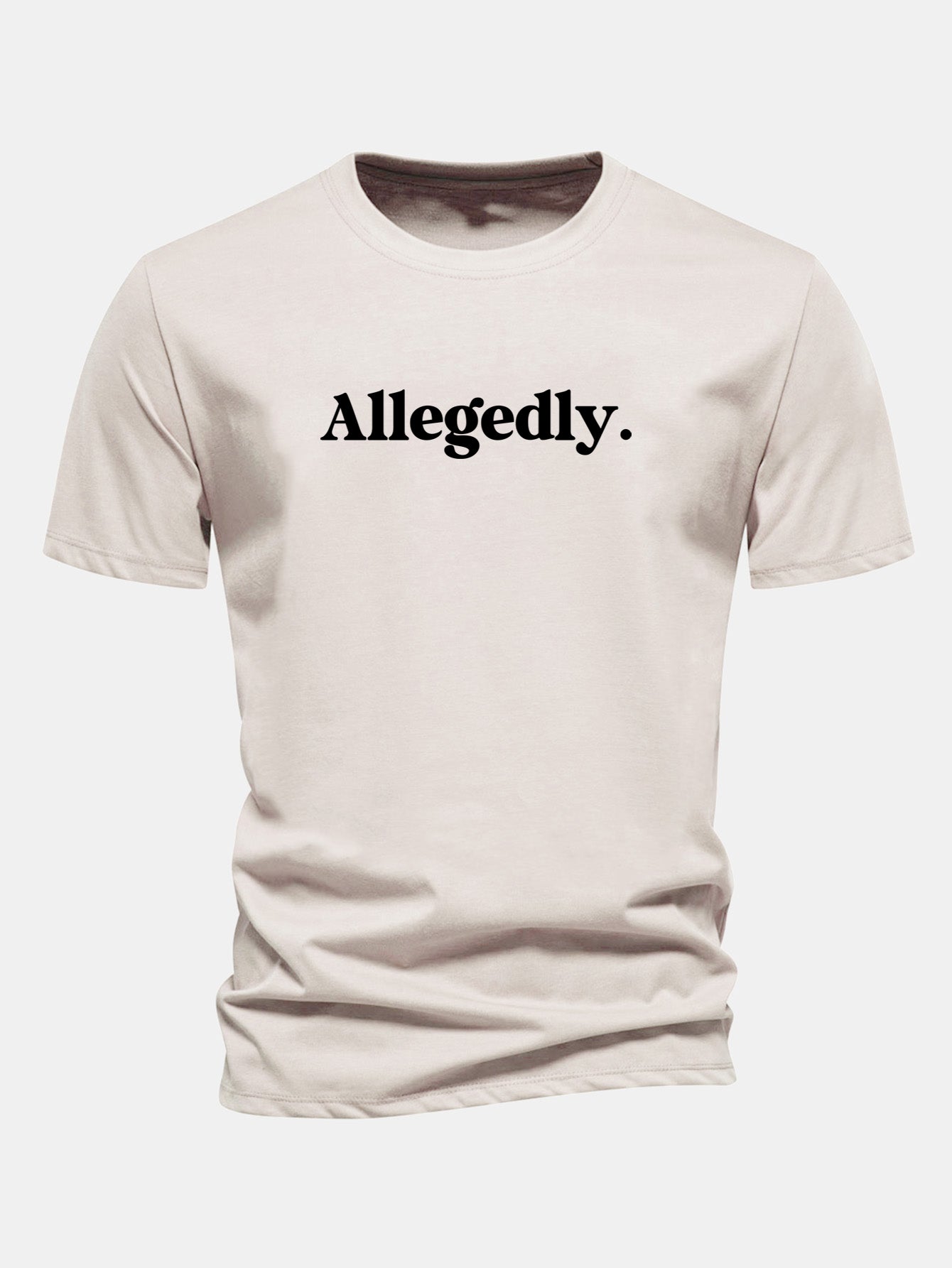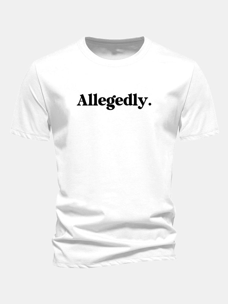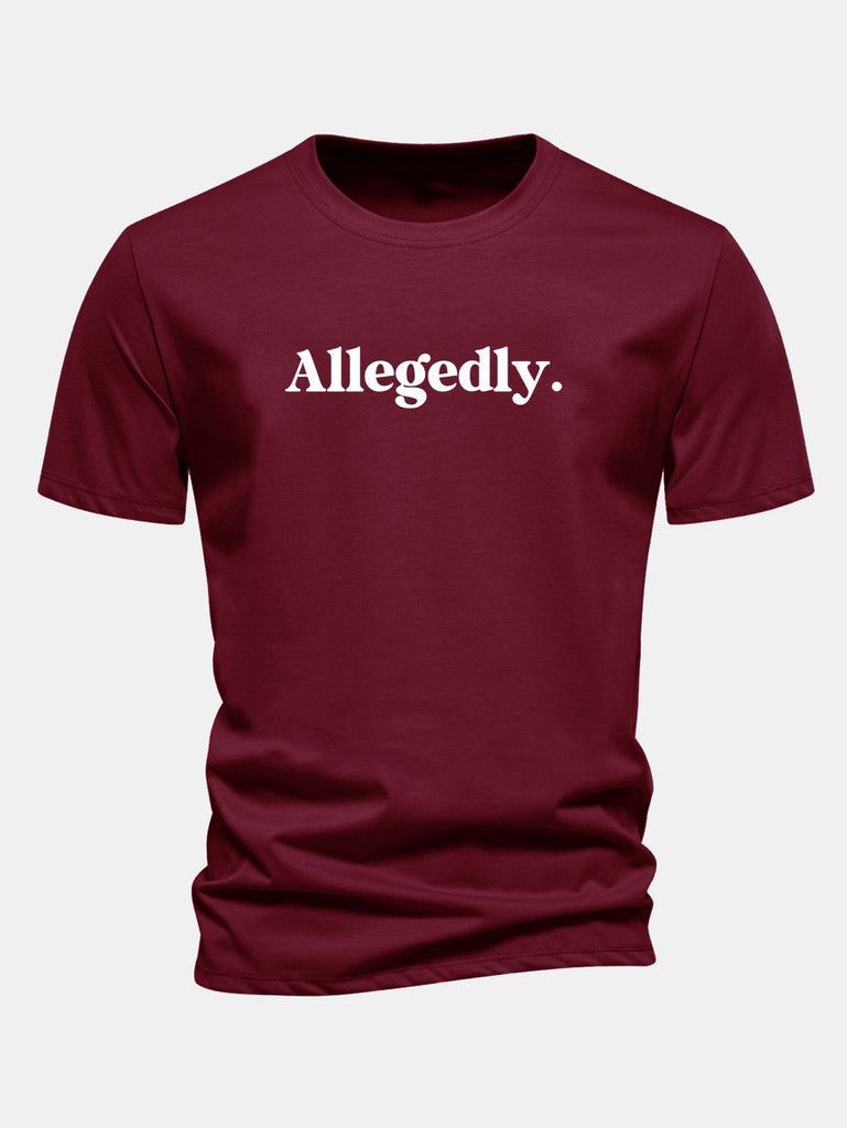 Featuring a bold ''Allegedly'' text graphic, this tee delivers dry humor with a wink ¡ª perfect for those who love sarcasm, irony, or making a statement without saying too much. Crafted from soft, breathable 100% cotton, it offers all-day comfort with a classic regular fit that works with any laid-back look.