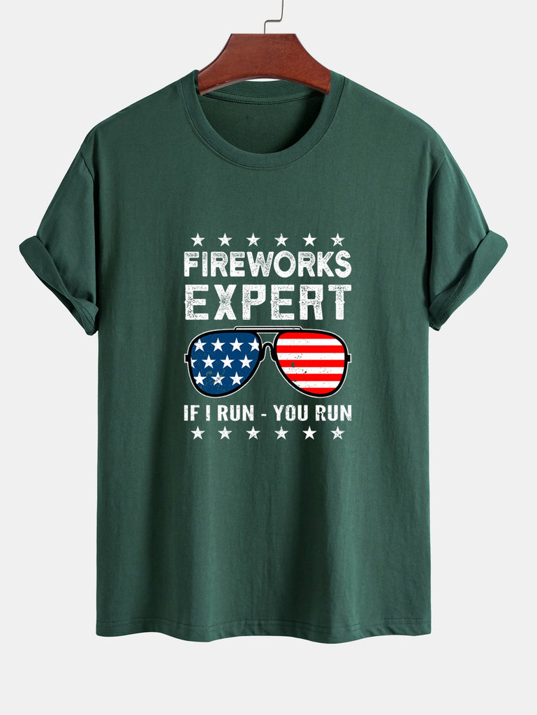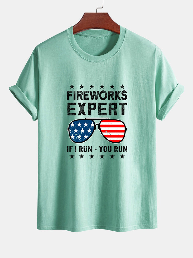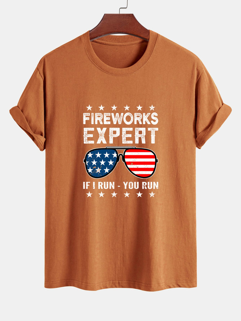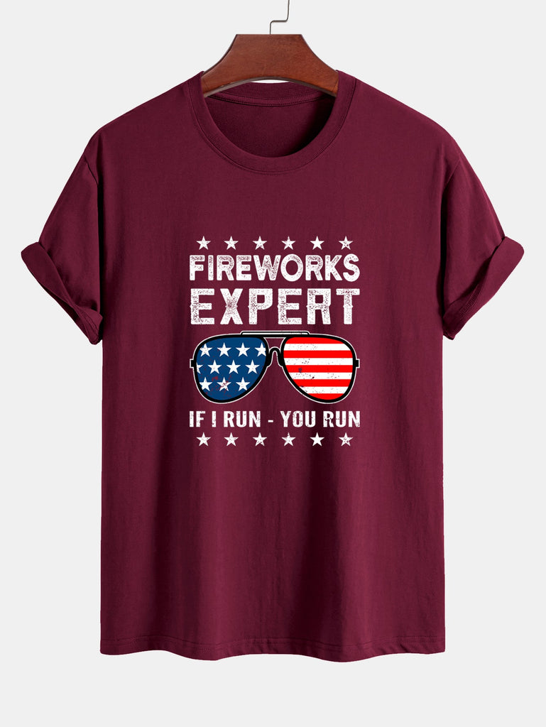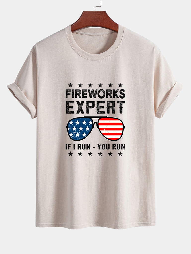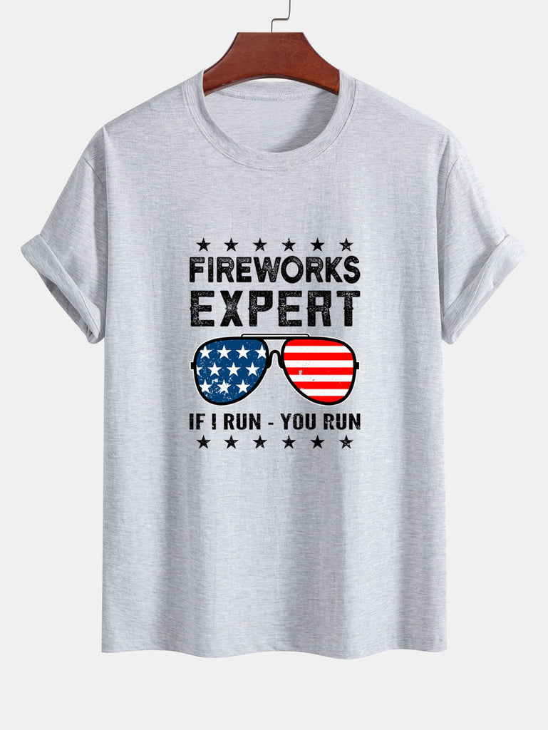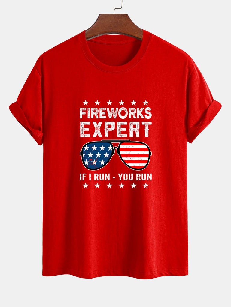 Regular Fit American Flag Sunglasses Print Cotton T-Shirt