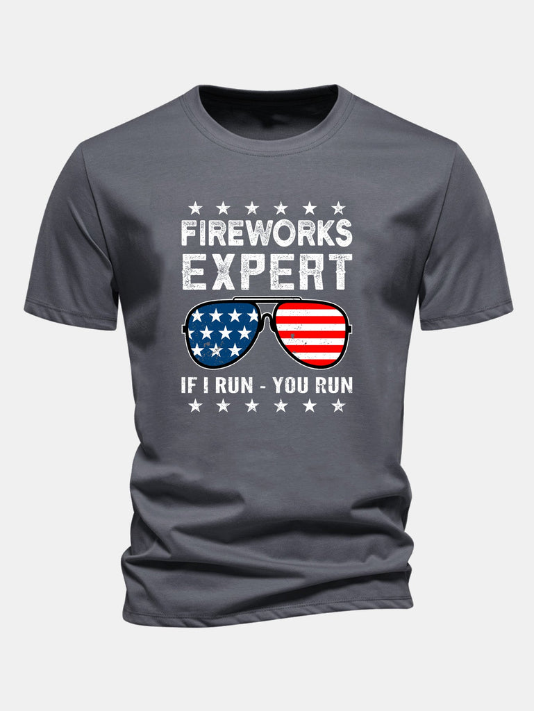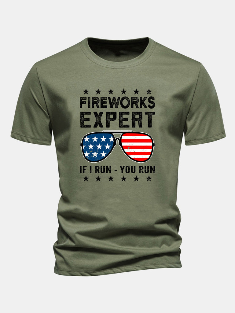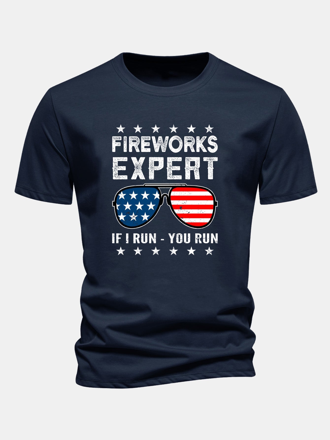 Regular Fit American Flag Sunglasses Print Cotton T-Shirt