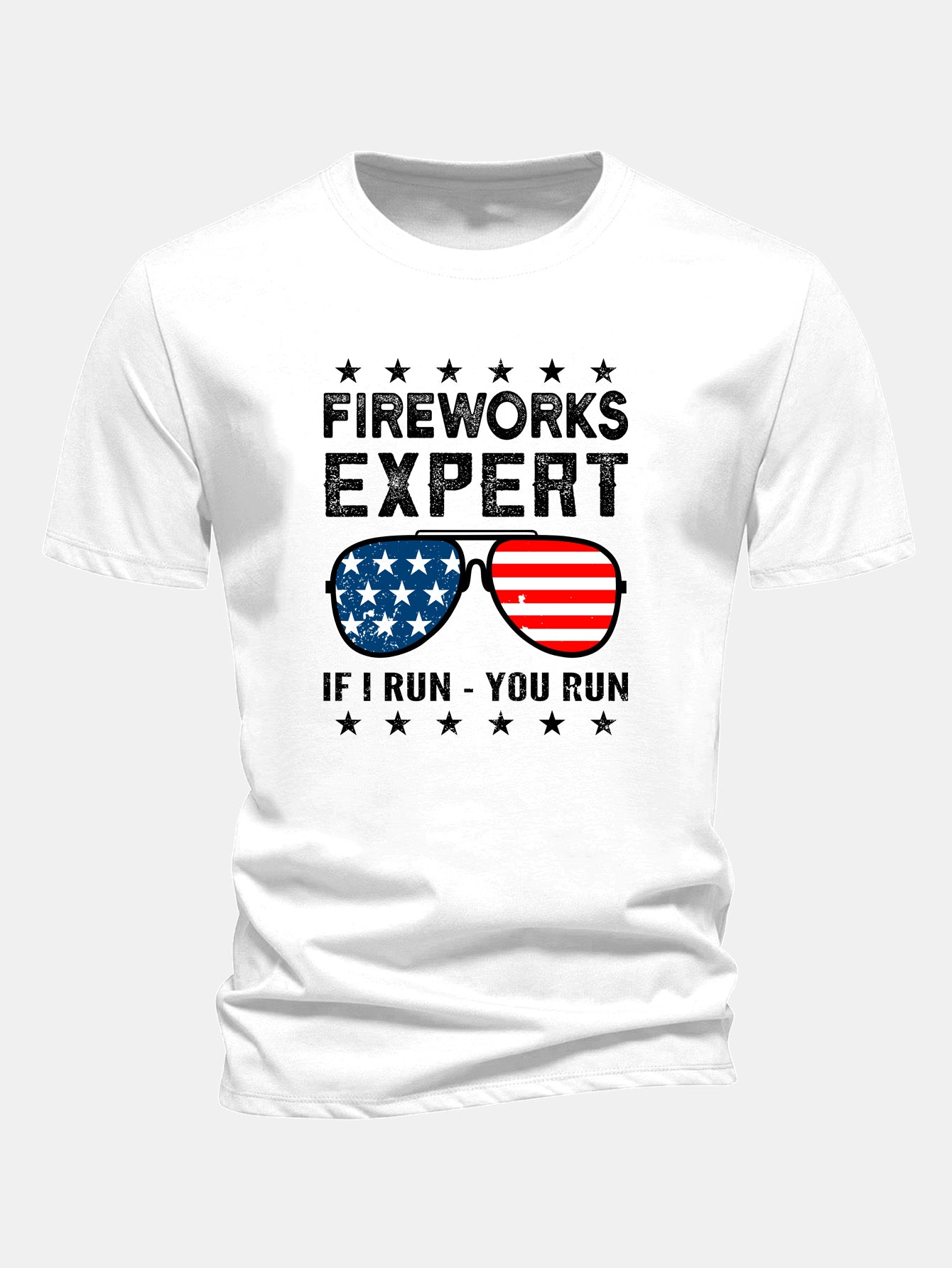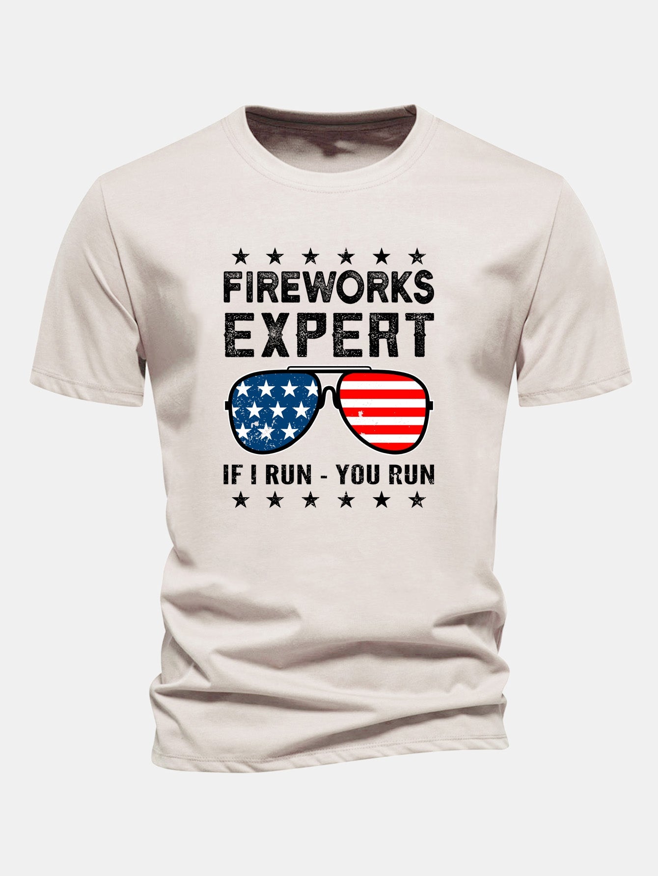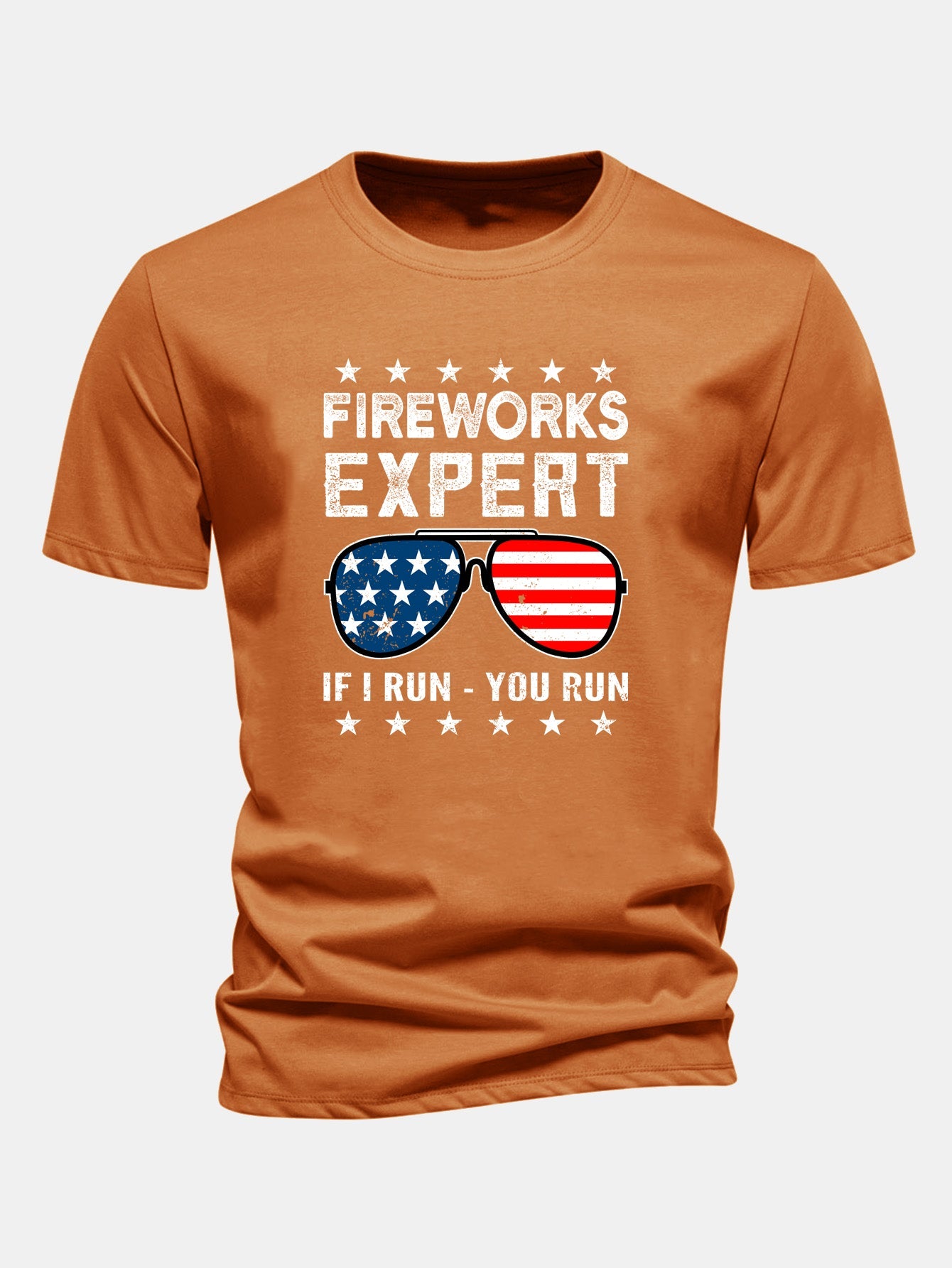Regular Fit American Flag Sunglasses Print Cotton T-Shirt
