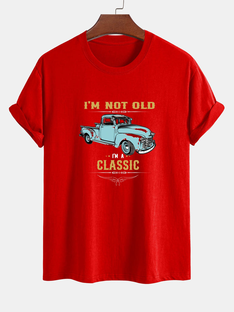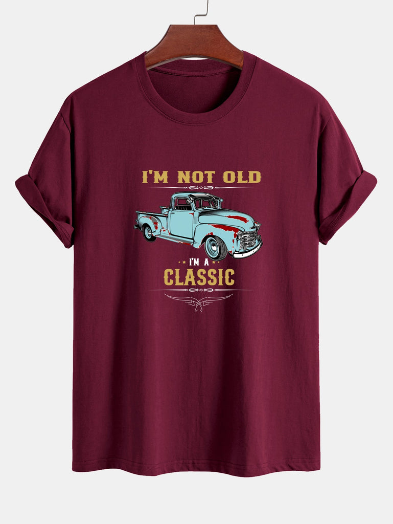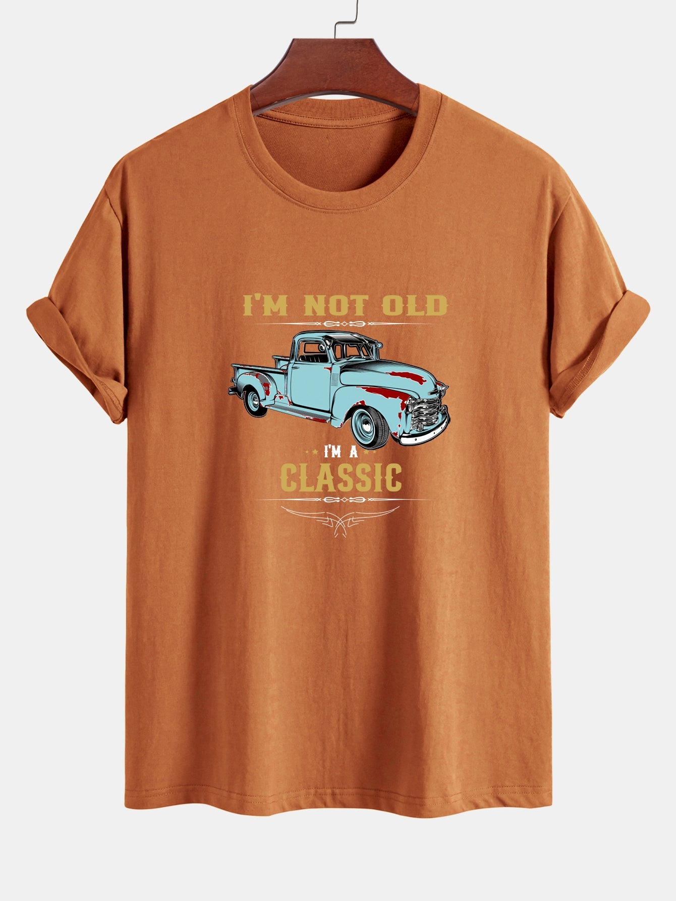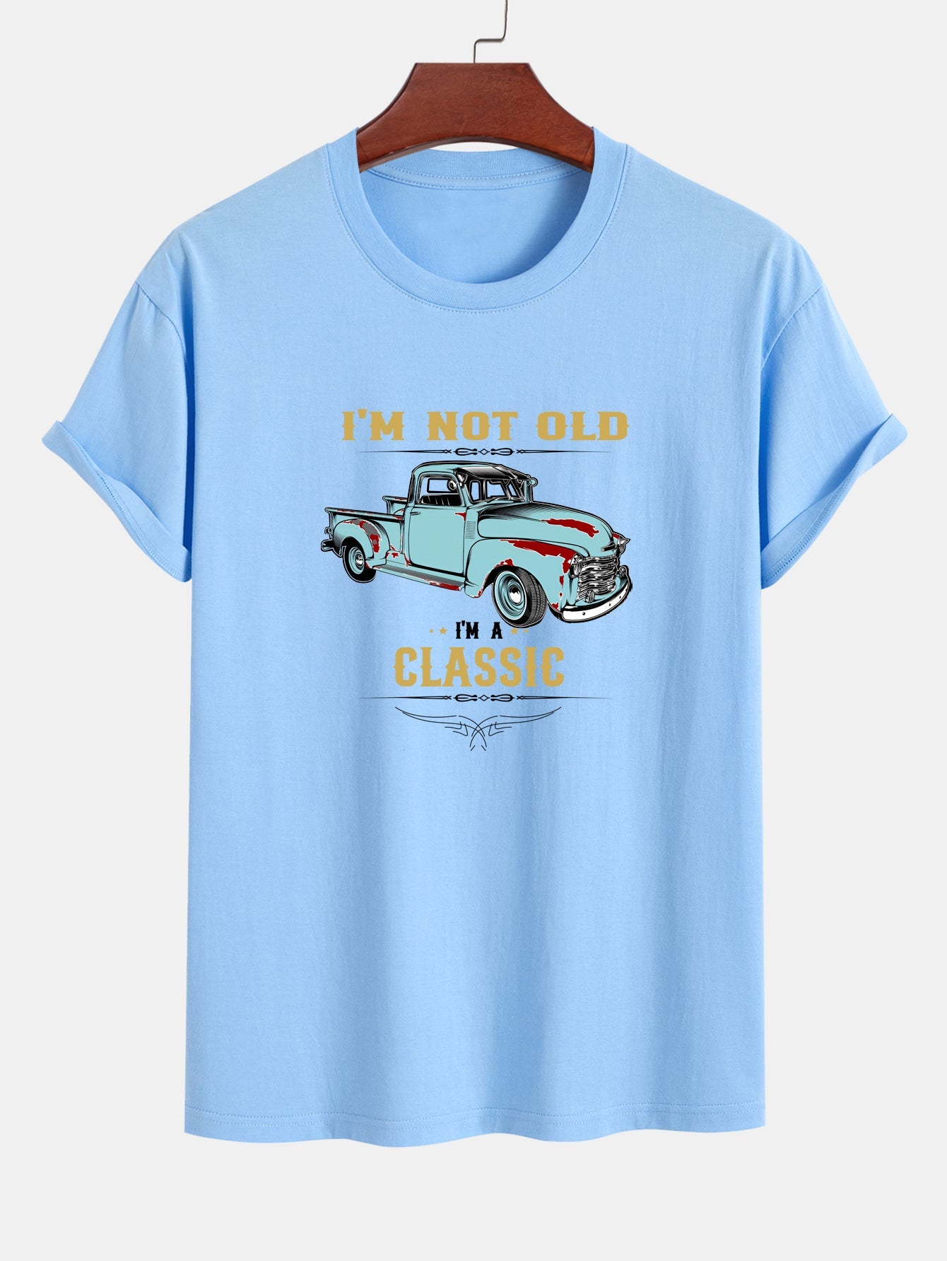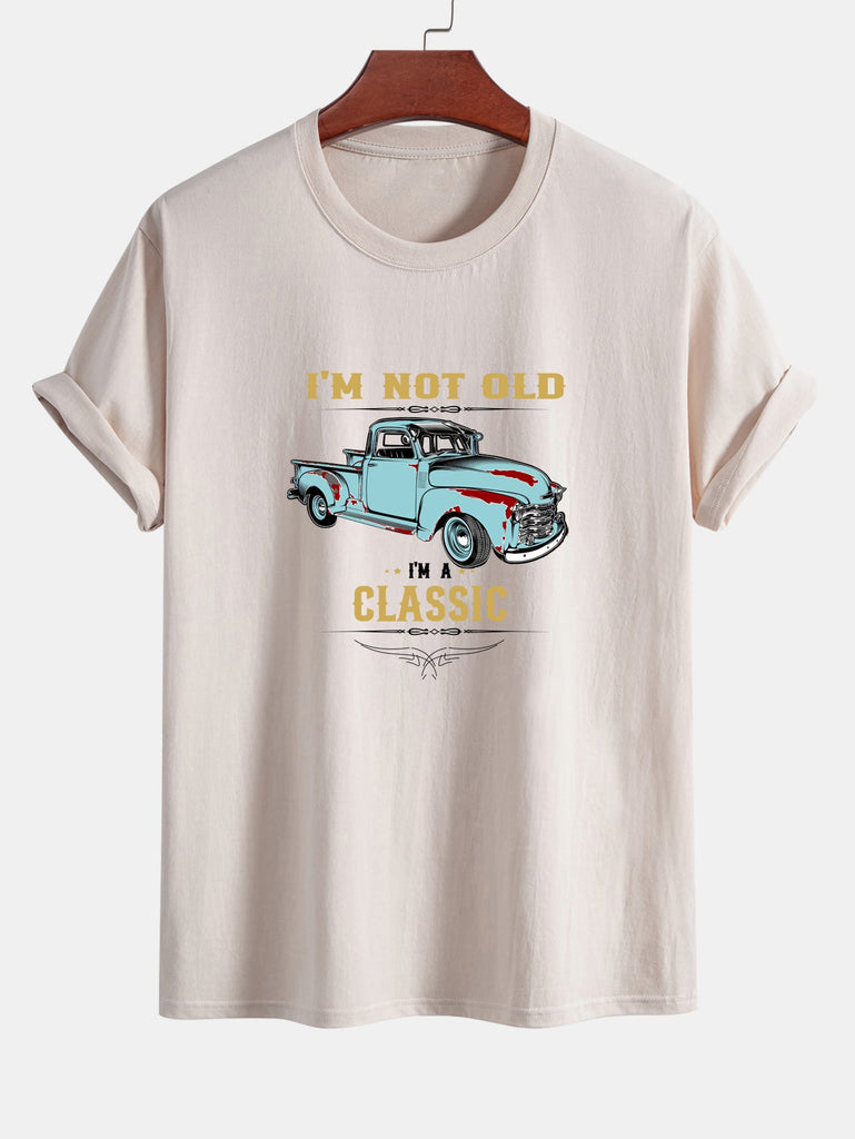 Fuel your style with a touch of nostalgia in this classic car print cotton T-shirt. Featuring a bold graphic of a vintage automobile, this tee brings timeless cool to your everyday wardrobe ¡ª perfect for car enthusiasts, retro fans, or anyone who appreciates old-school charm.