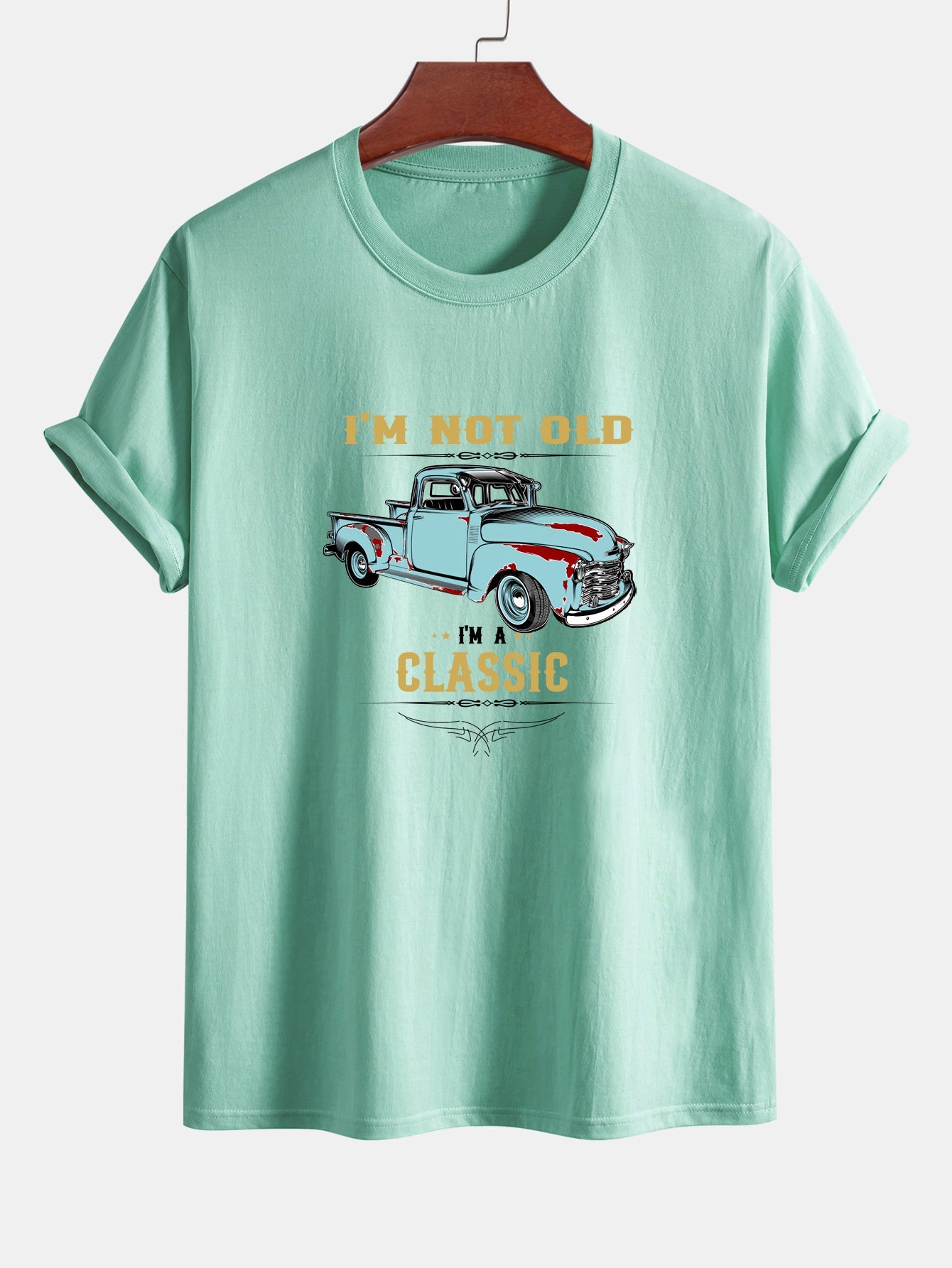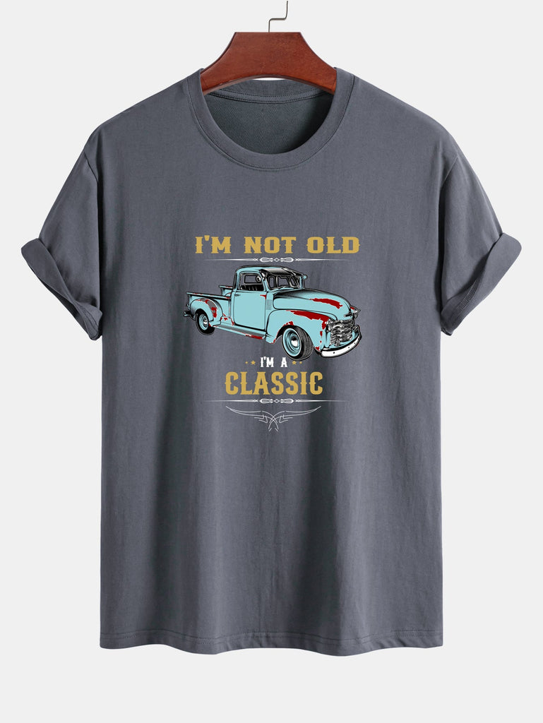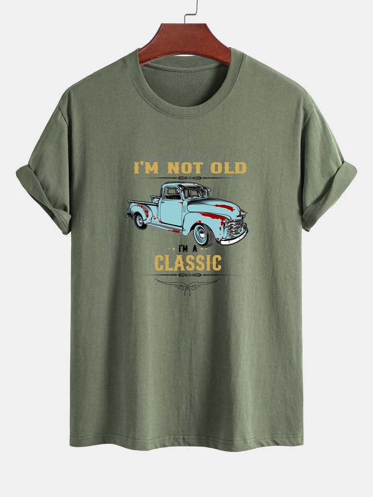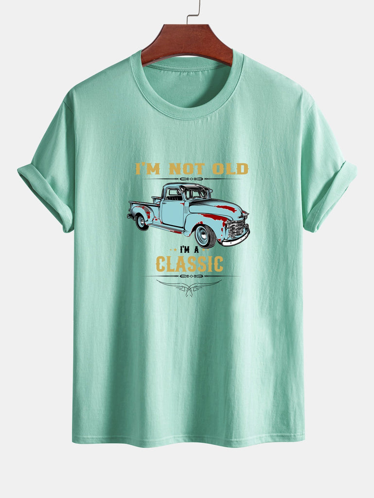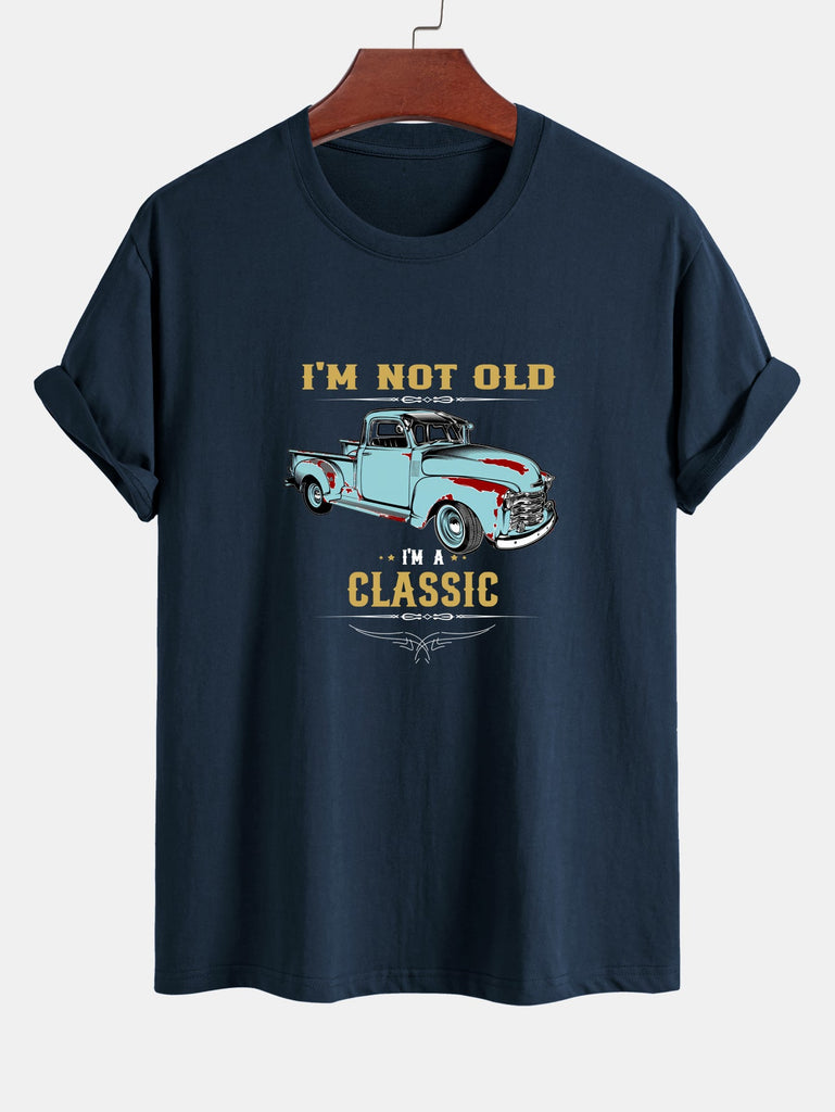 Fuel your style with a touch of nostalgia in this classic car print cotton T-shirt. Featuring a bold graphic of a vintage automobile, this tee brings timeless cool to your everyday wardrobe ¡ª perfect for car enthusiasts, retro fans, or anyone who appreciates old-school charm.