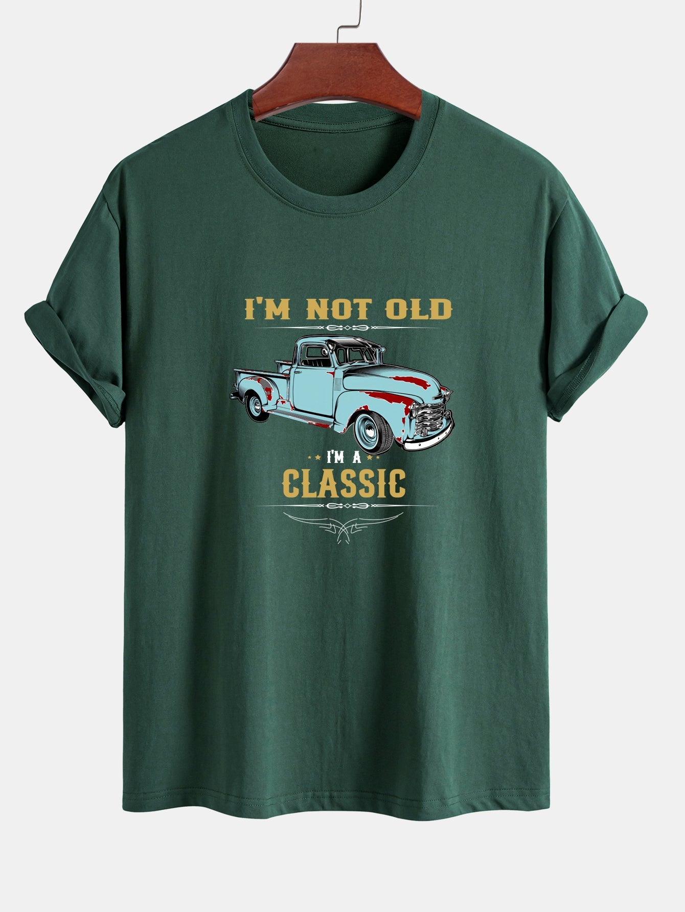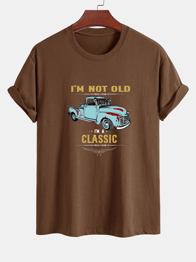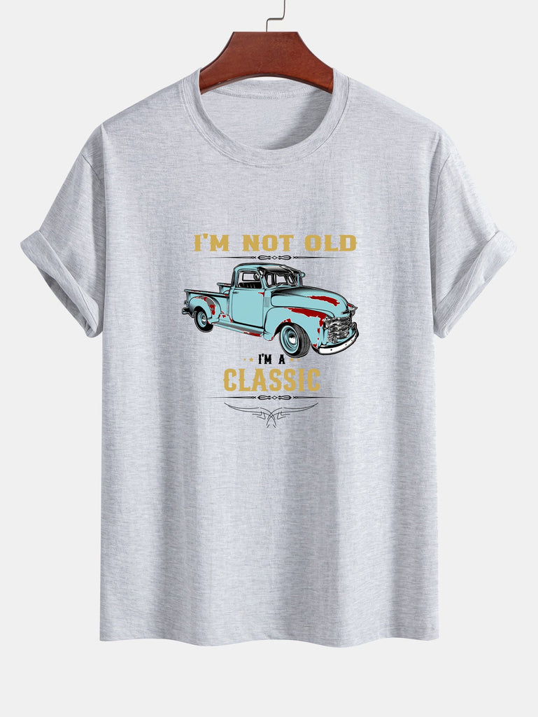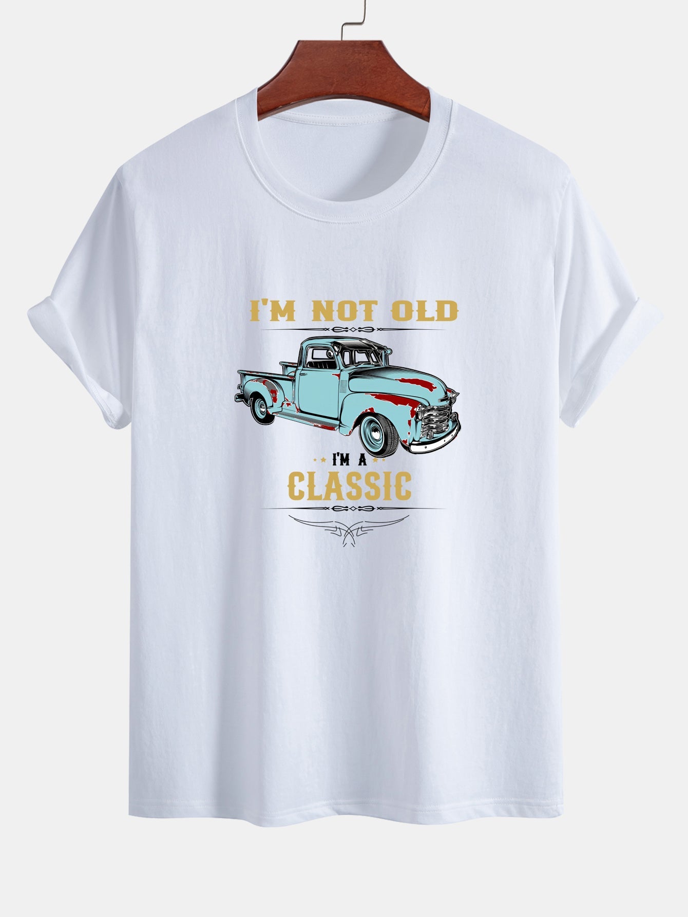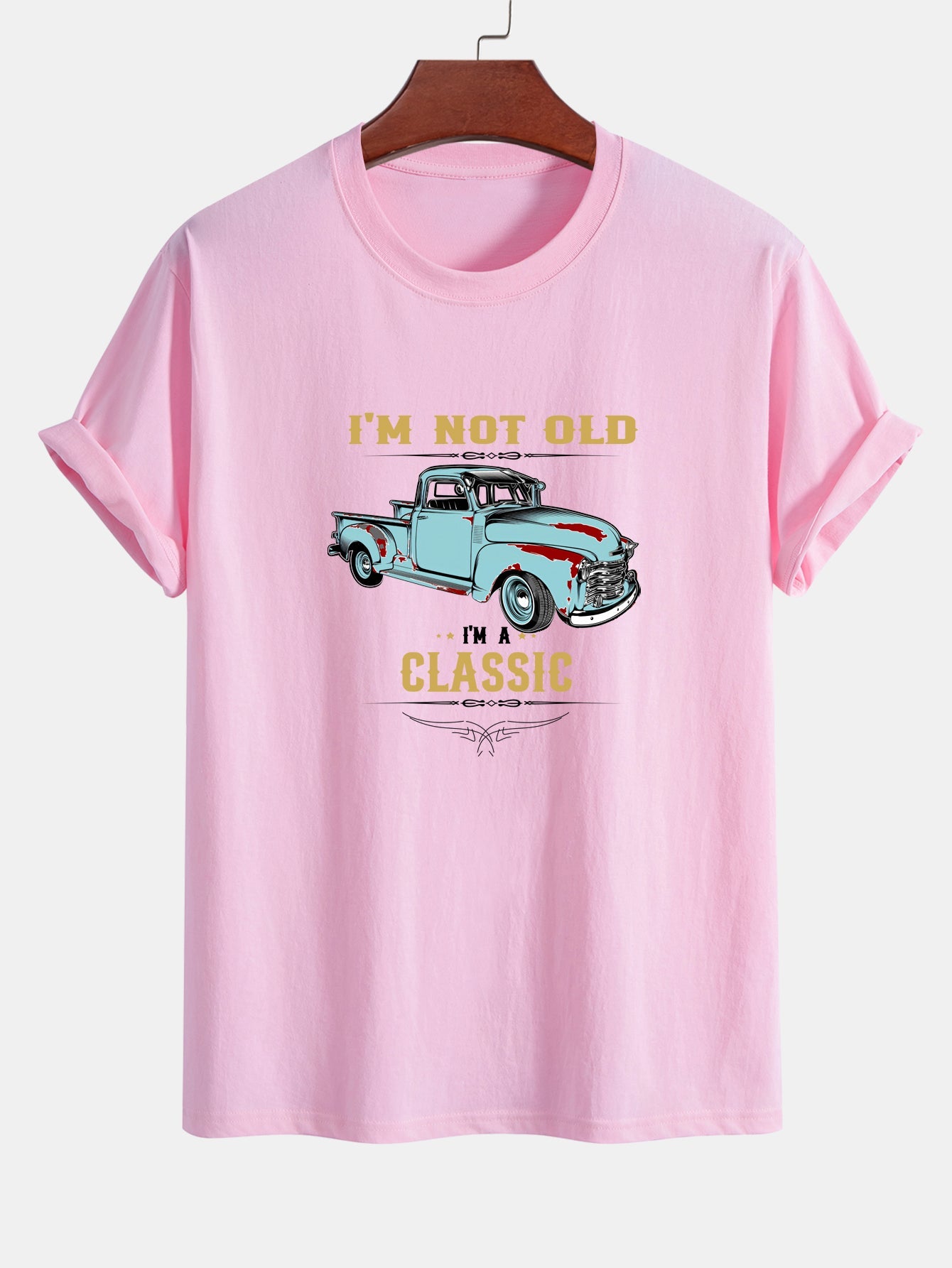 Fuel your style with a touch of nostalgia in this classic car print cotton T-shirt. Featuring a bold graphic of a vintage automobile, this tee brings timeless cool to your everyday wardrobe ¡ª perfect for car enthusiasts, retro fans, or anyone who appreciates old-school charm.