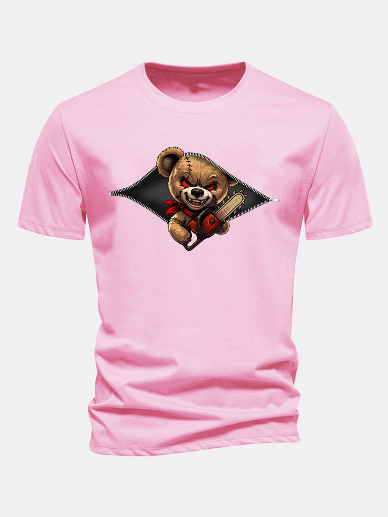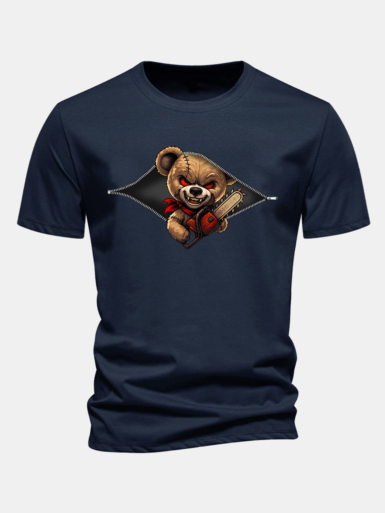 Regular Fit Halloween Zipper Evil Bear Print Cotton T-Shirt