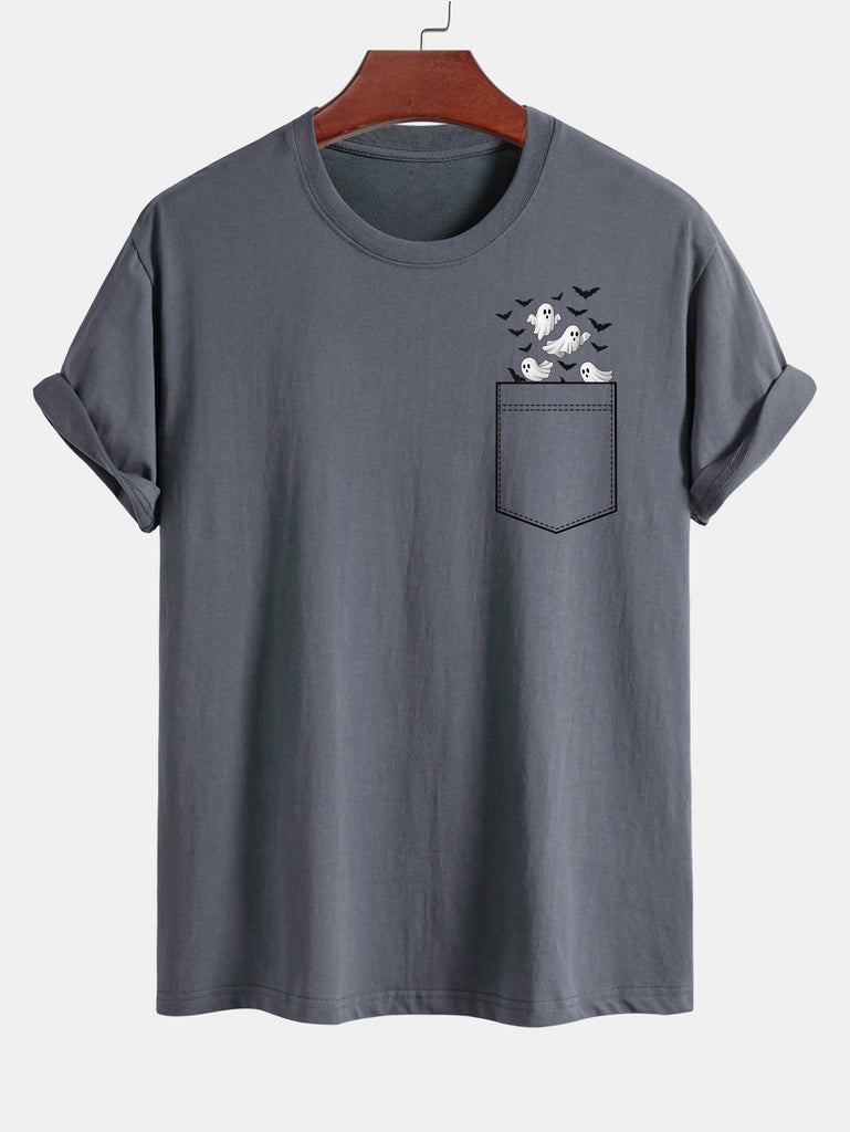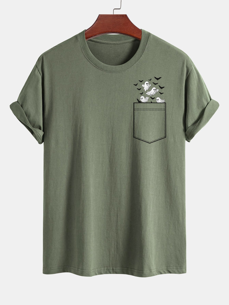 Regular Fit Pocket Bat Ghost Print Cotton T-Shirt