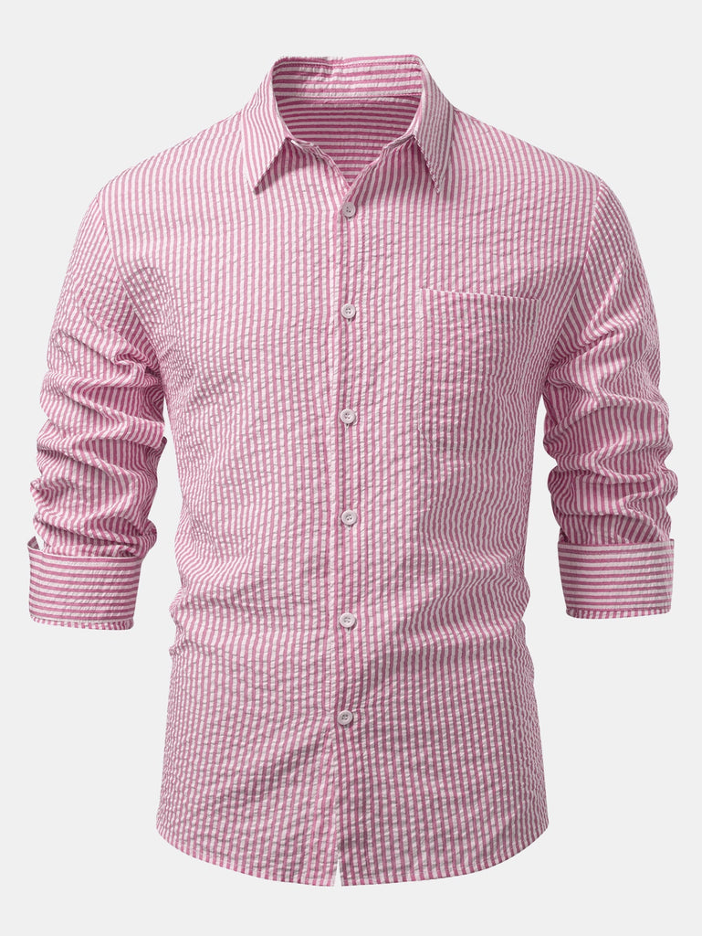 Seersucker Striped Button Up Shirt & Straight Leg Linen Pants