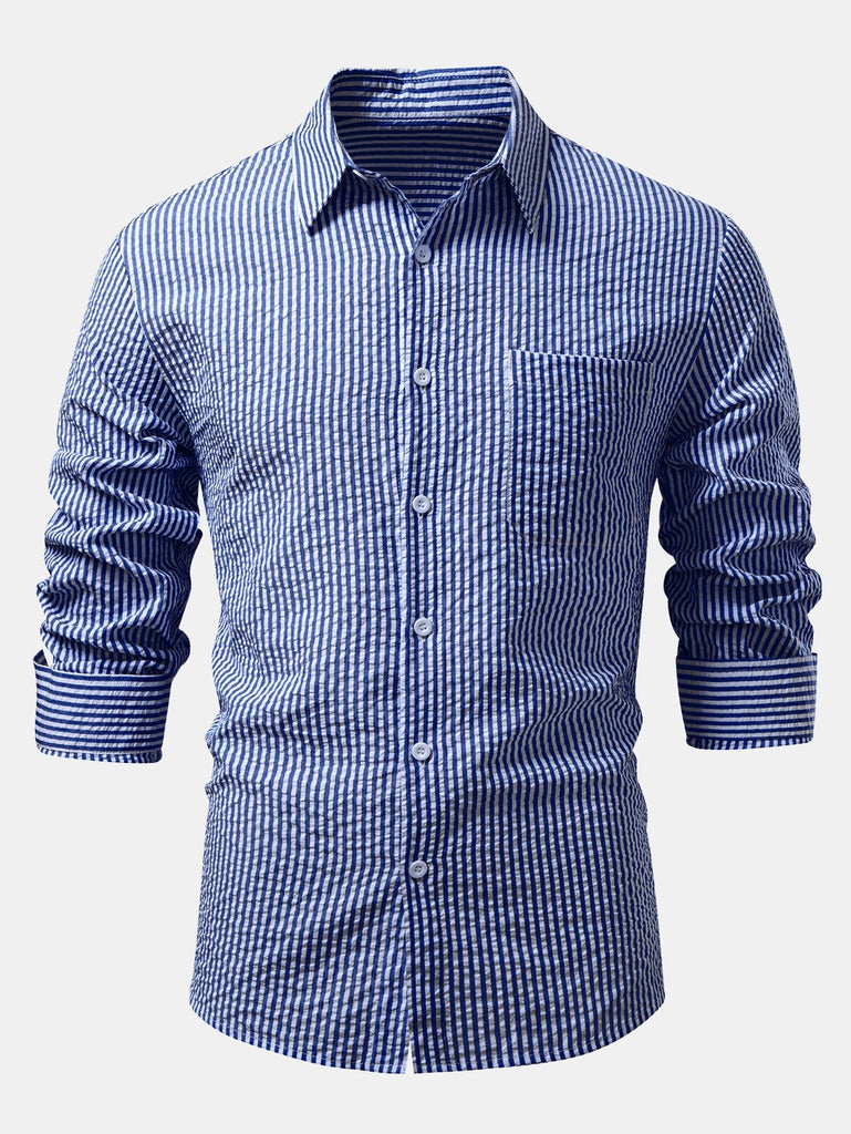 The shirt is crafted from lightweight seersucker fabric with a crisp striped pattern and classic button-up design, offering breathable comfort and timeless appeal. Paired with relaxed straight-leg linen pants, this set is perfect for warm weather, casual outings, vacations, or weekend gatherings. Wear them together for an effortless coordinated look or separately for versatile styling.