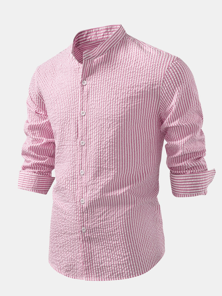 Seersucker Striped Stand Collar Shirt