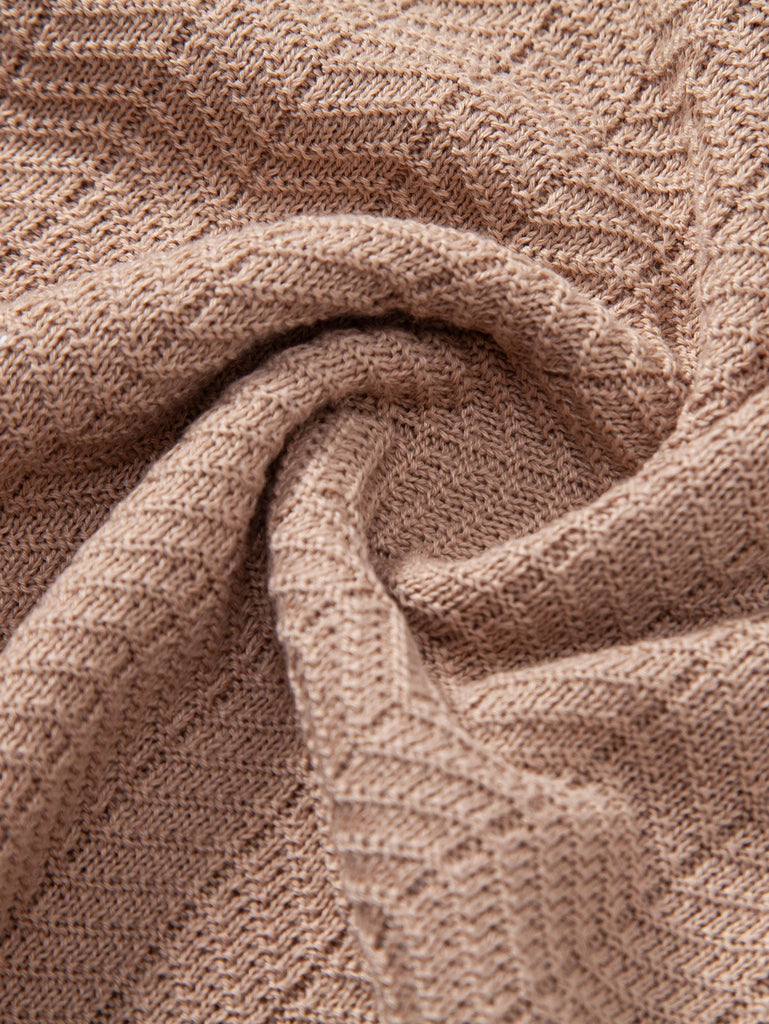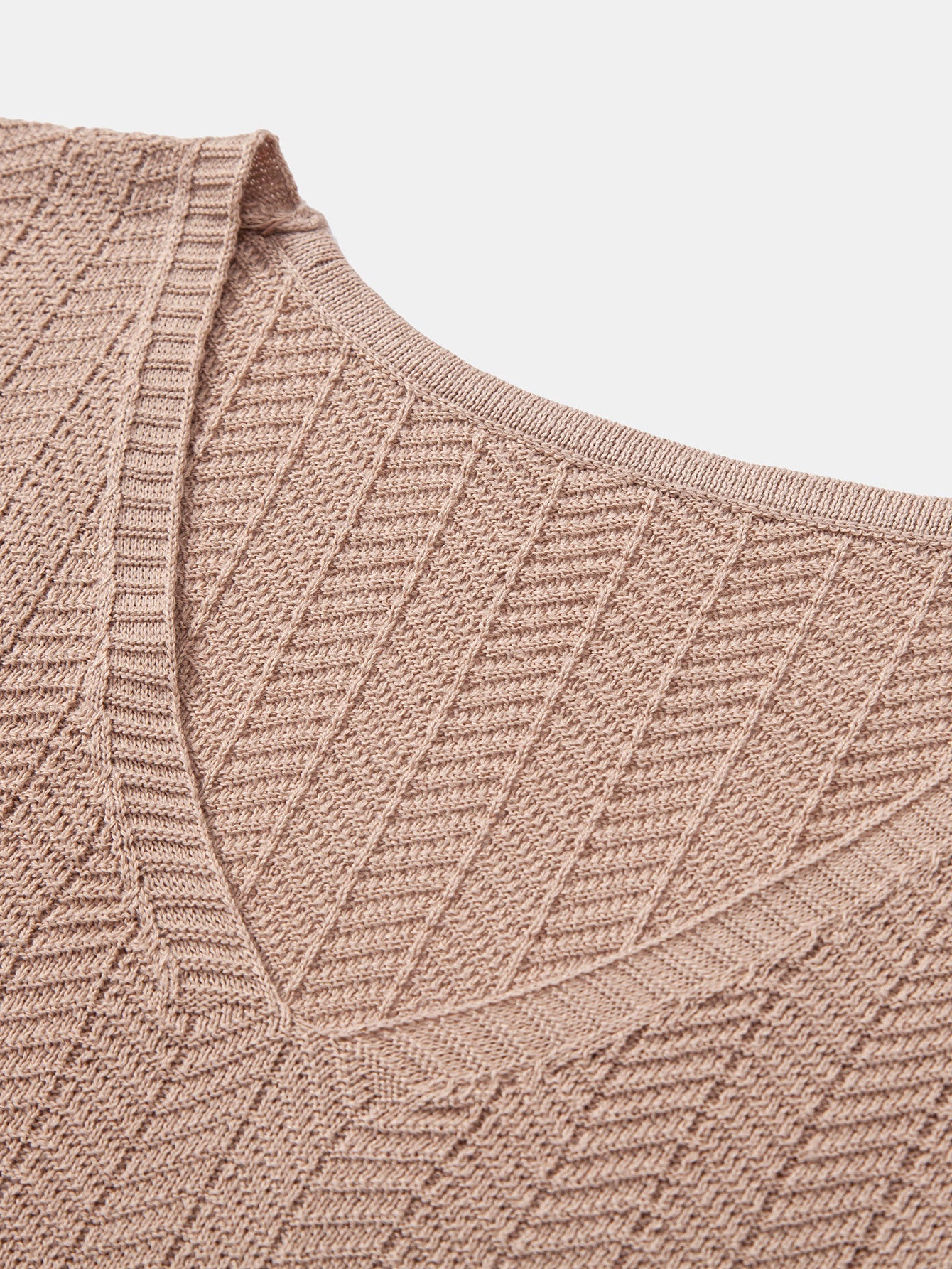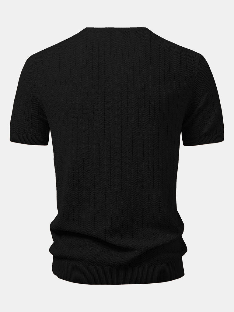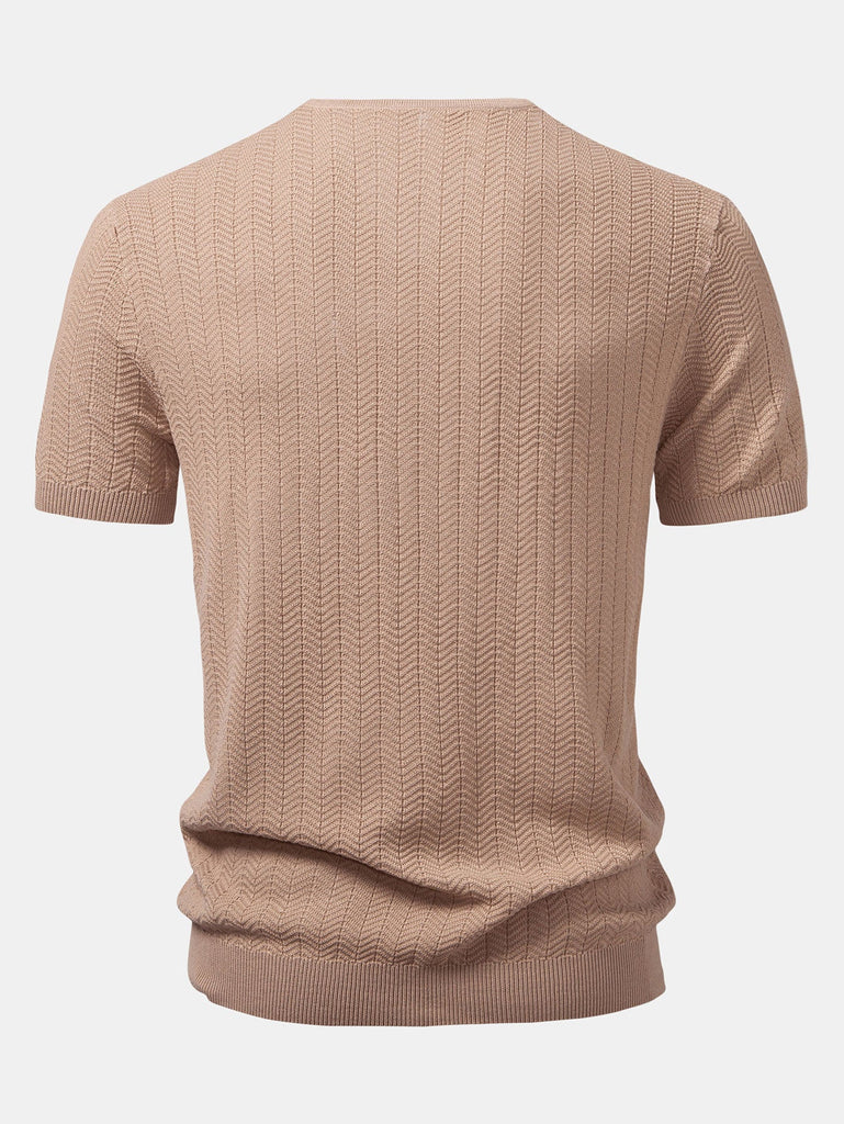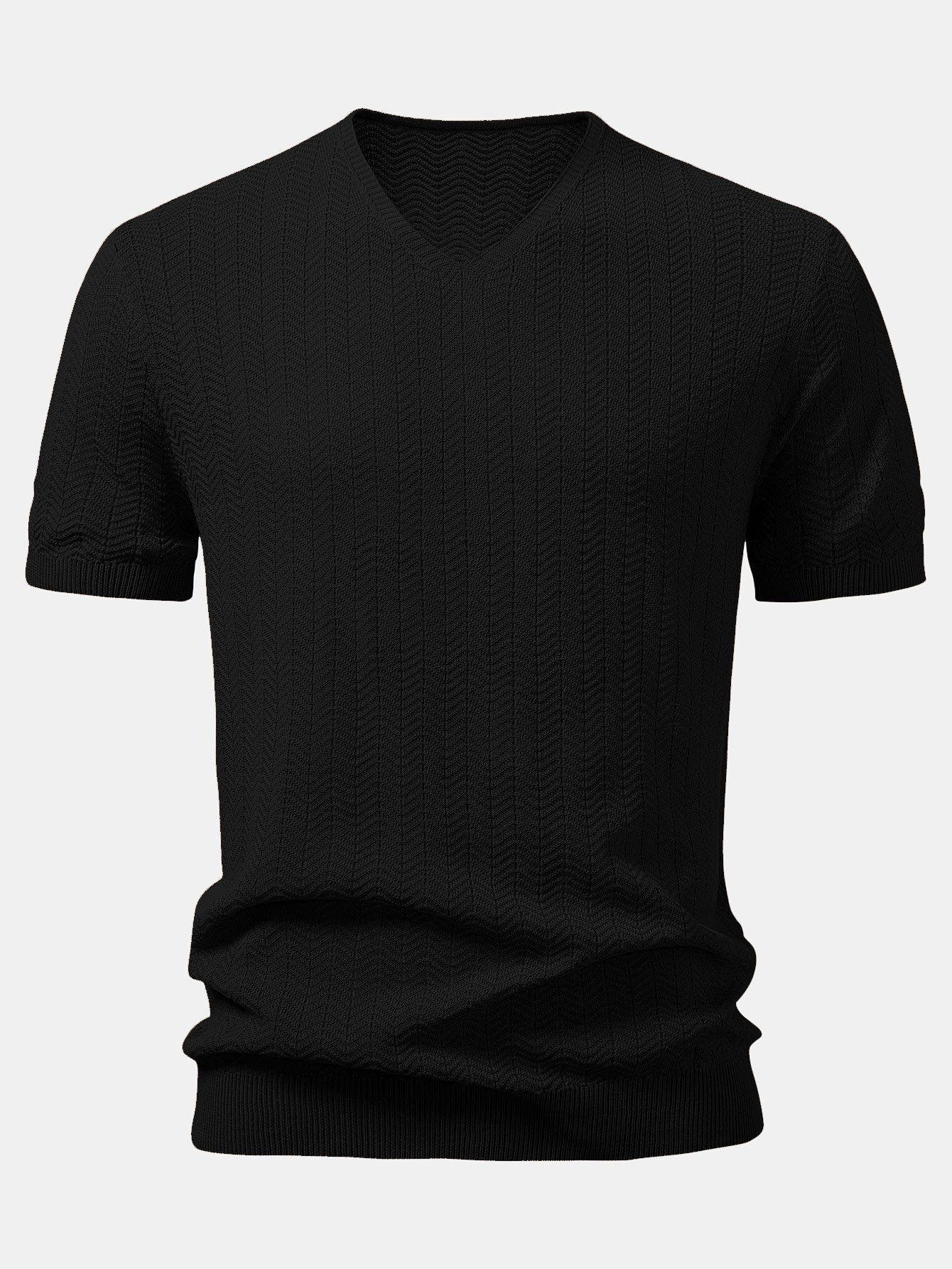 Upgrade your everyday wardrobe with this stylish geometric knitted V neck T-shirt. Crafted from a soft, breathable knit fabric, it features a textured geometric pattern that adds depth and sophistication to your casual look.