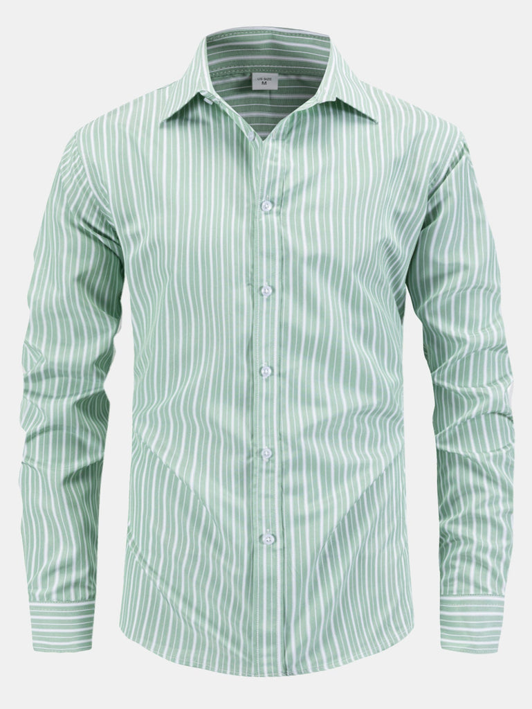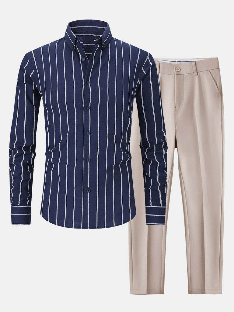 Long Sleeve Stripe Cotton Button Up Shirt & Slim Fit Tapered Trousers