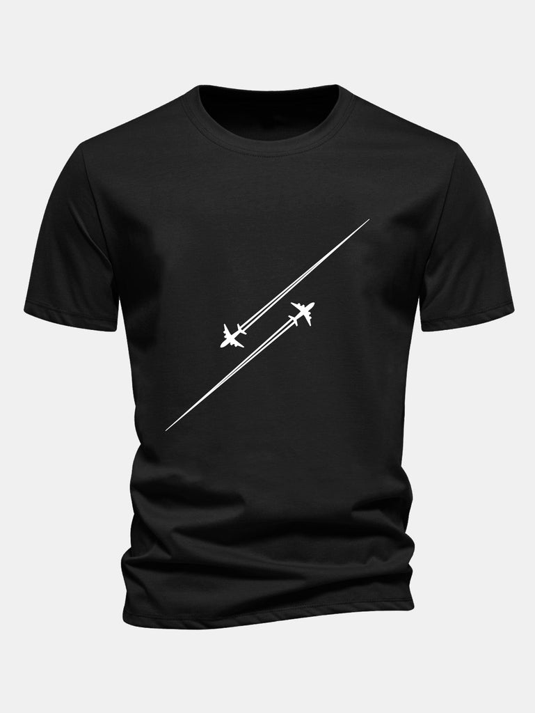 Regular Fit Fighter Jets Print Cotton T-Shirt