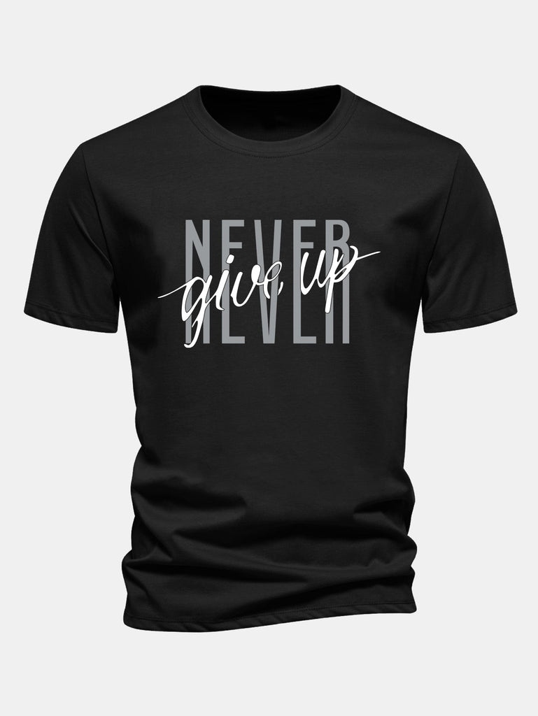 Regular Fit Never Give Up Print Cotton T-Shirt