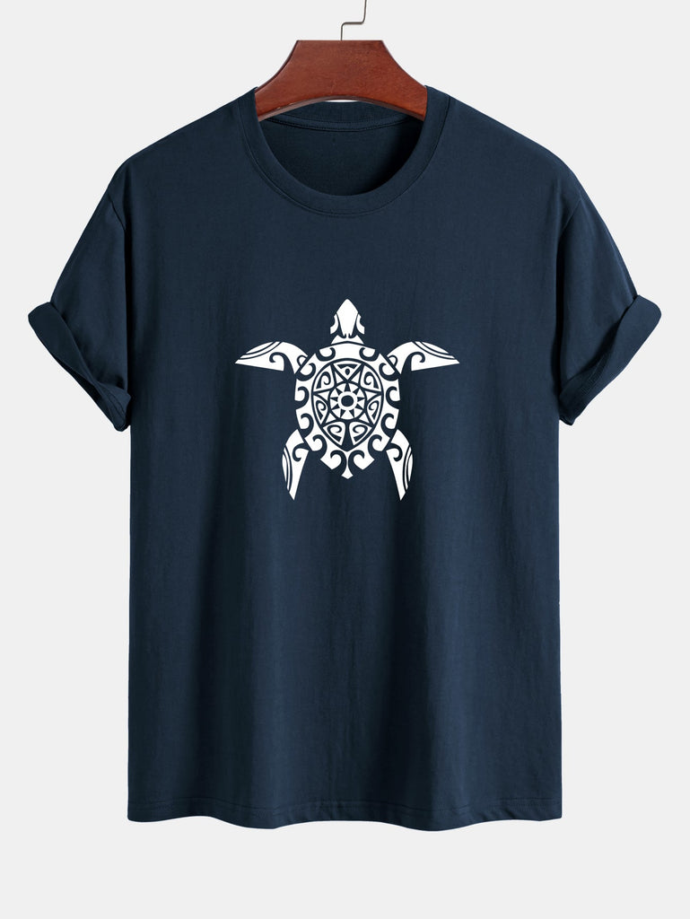 Regular Fit Geometric Turtle Print Cotton T-Shirt