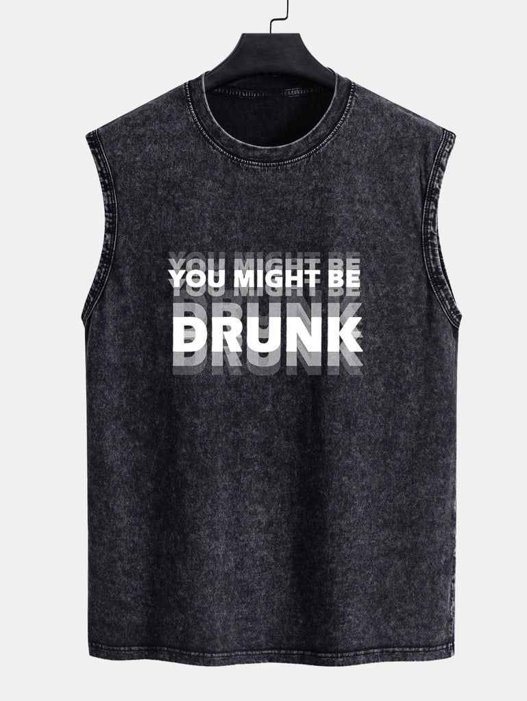 You Might Be Drunk Print Washed Distressed Tank Top