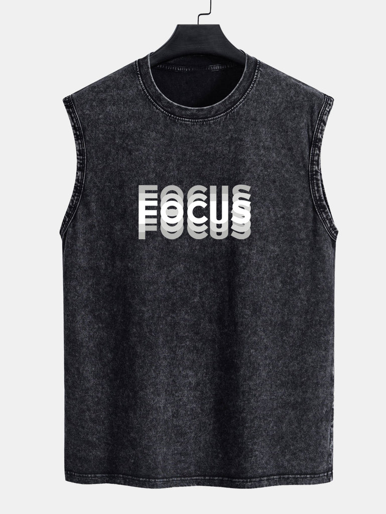 Focus Print Washed Distressed Tank Top