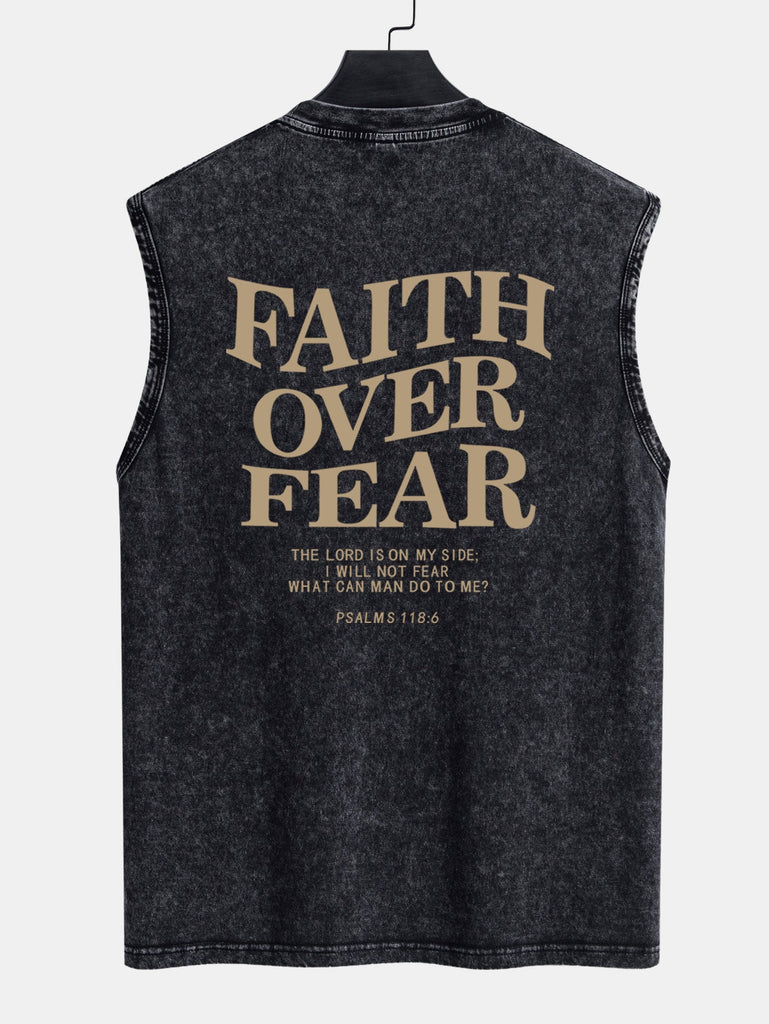 Faith Over Fear Back Print Washed Distressed Tank Top