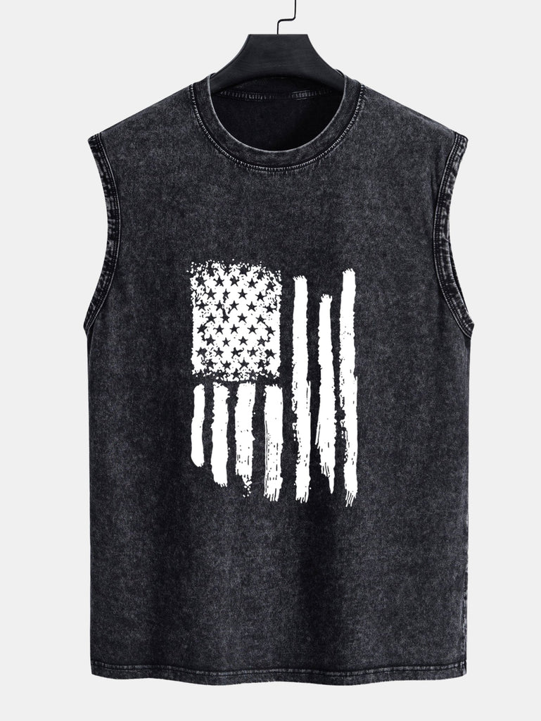 American Flag Print Washed Distressed Tank Top