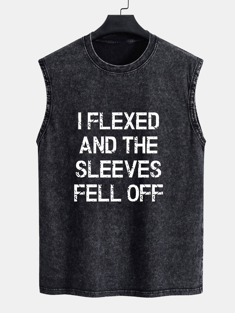 Slogan Print Washed Distressed Tank Top
