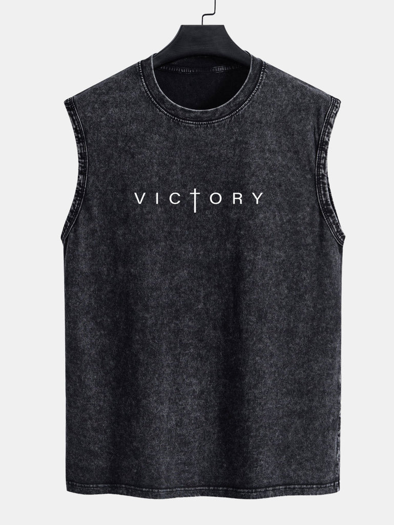Victory Slogan Print Washed Distressed Tank Top