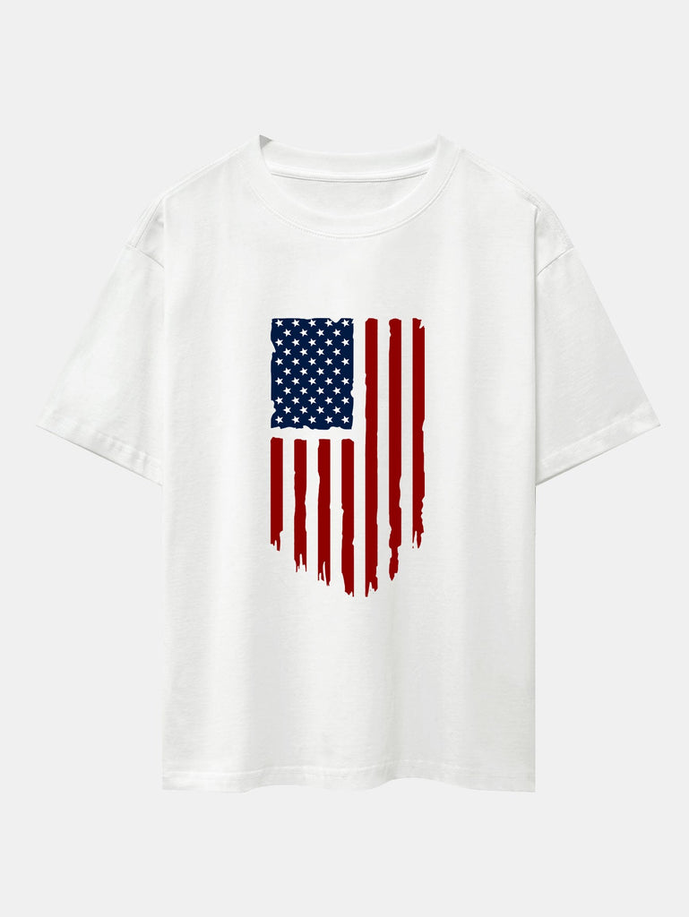 USA Flag Print Drop Shoulder Oversize T-Shirt