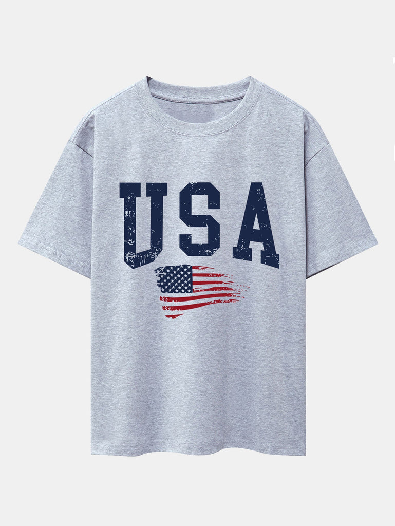USA Print Drop Shoulder Oversize T-Shirt