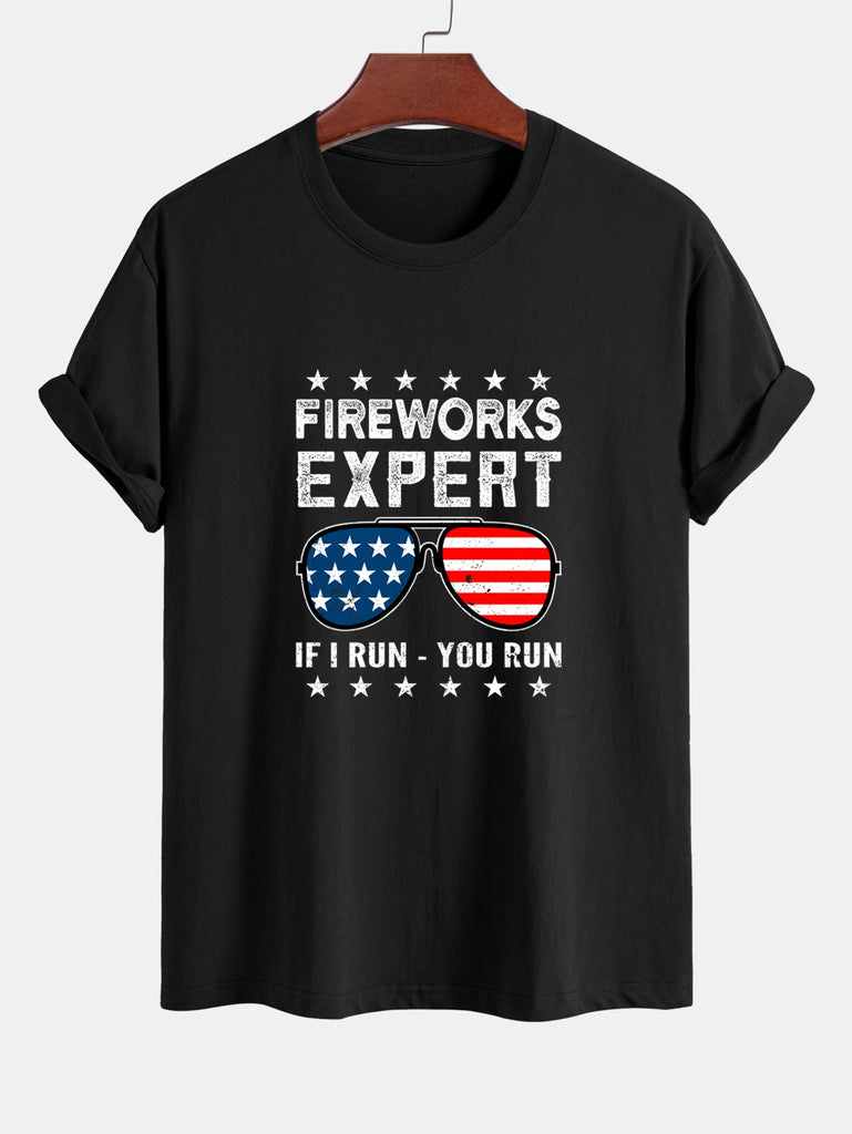 Regular Fit American Flag Sunglasses Print Cotton T-Shirt