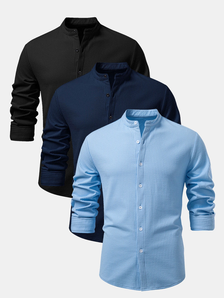 3 Pieces Long Sleeve Muscle Fit Ribbed Stand Collar Shirt