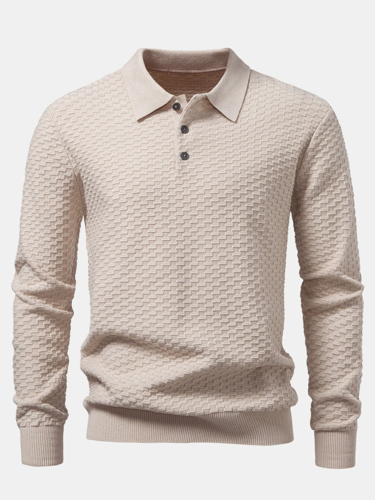 Long Sleeve Ribbed Knit Johnny Collar Polo Shirt