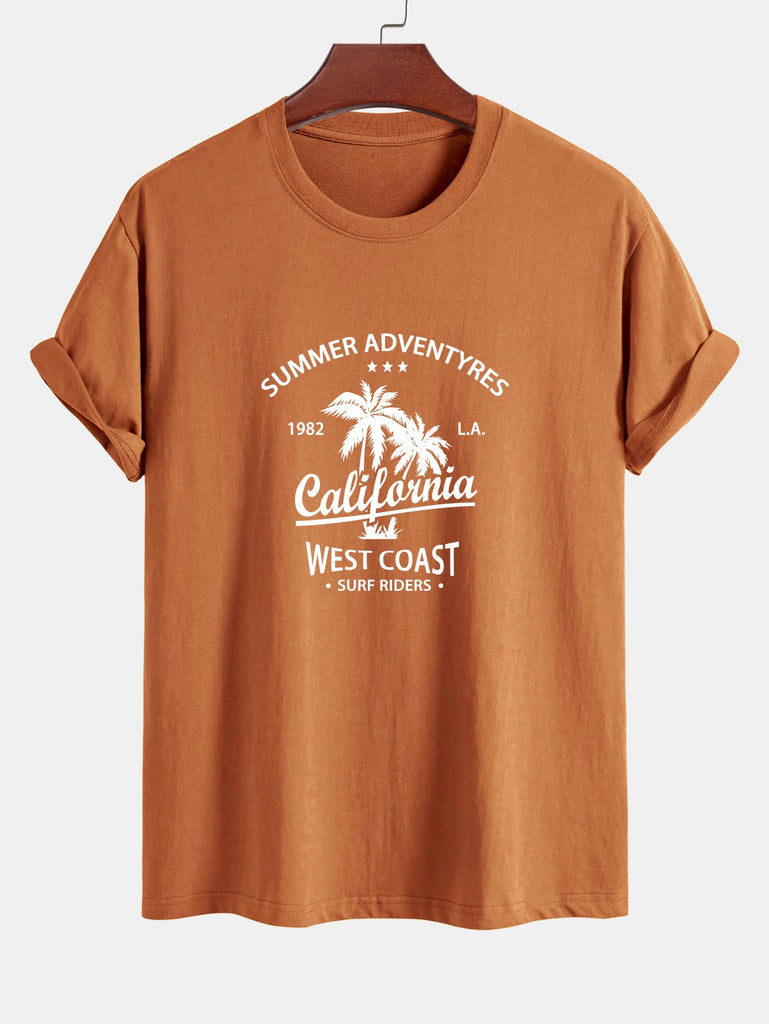 Regular Fit California Palm Tree Print Cotton T-Shirt