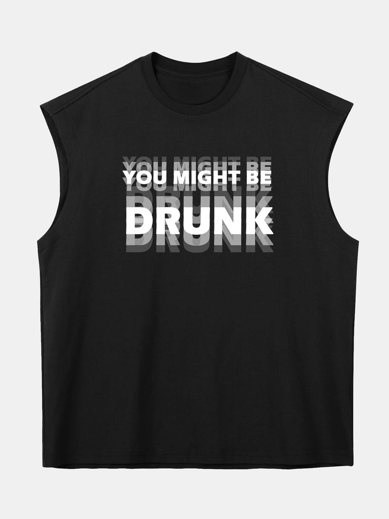Relax Fit You Might Be Drunk Print Cotton Drop Shoulder Sleeveless T-Shirt