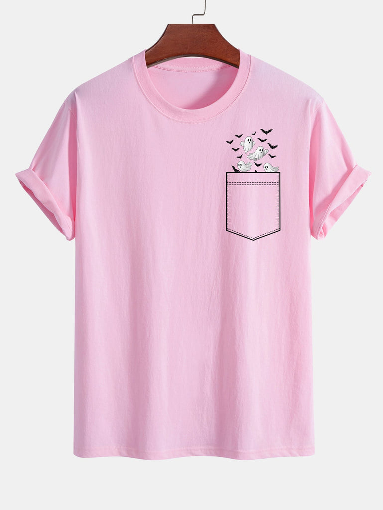 Regular Fit Pocket Bat Ghost Print Cotton T-Shirt
