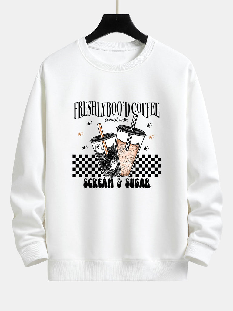 Freshly Boo¡¯d Coffee Halloween Print Relax Fit Sweatshirt