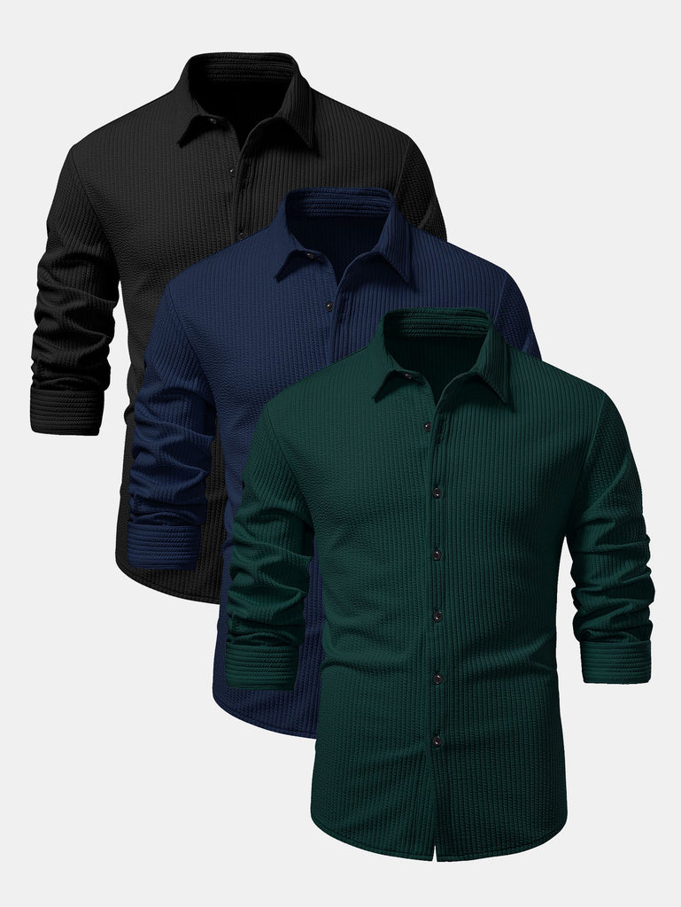 3 Pieces Long Sleeve Muscle Fit Ribbed Button Up Shirt