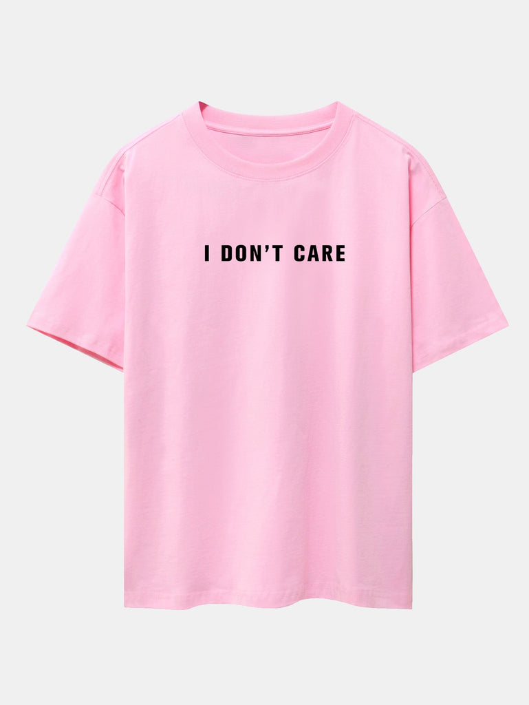 I Don't Care Print Drop Shoulder Oversize T-Shirt