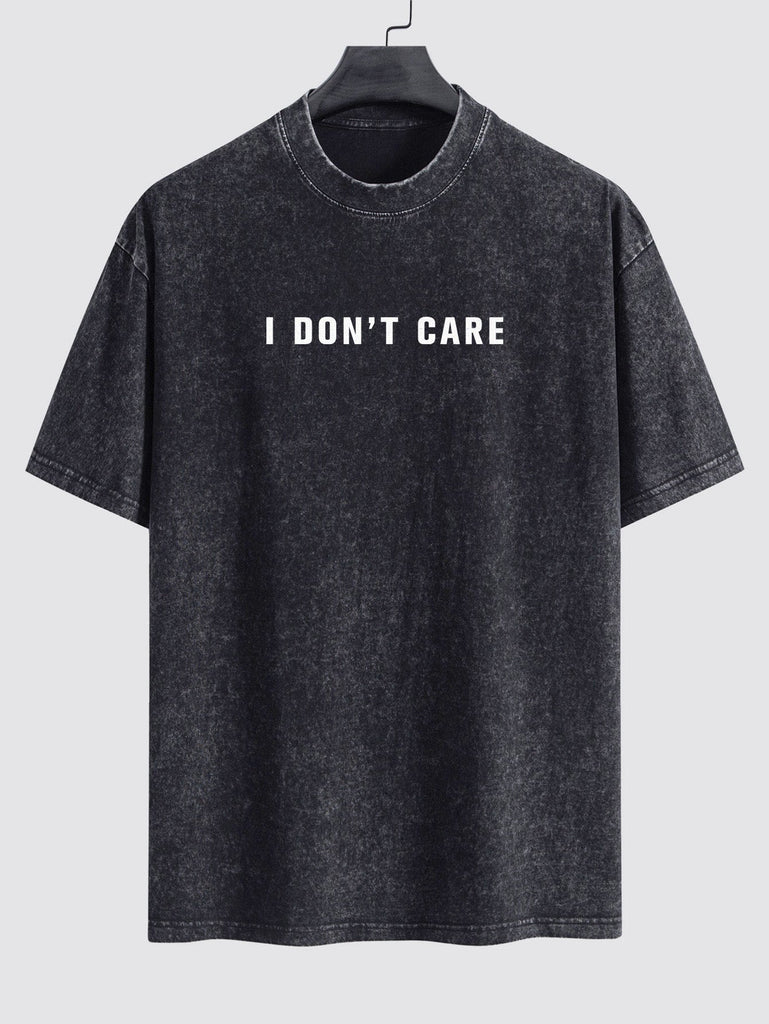 I Don't Care Print Washed Distressed Drop Shoulder T-Shirt