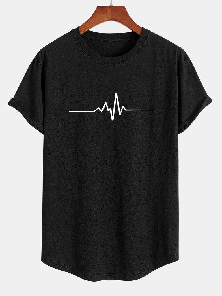 Heartbeat Flatline Print Cotton Arc Hem T-Shirt