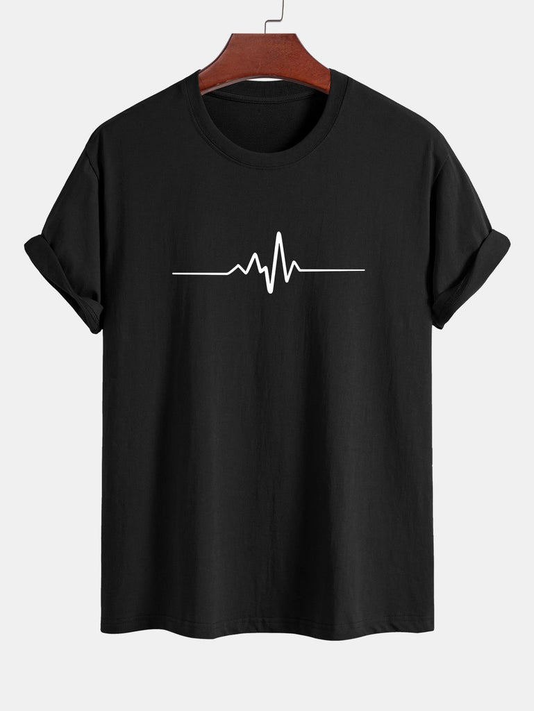 Regular Fit Heartbeat Flatline Print Cotton T-Shirt
