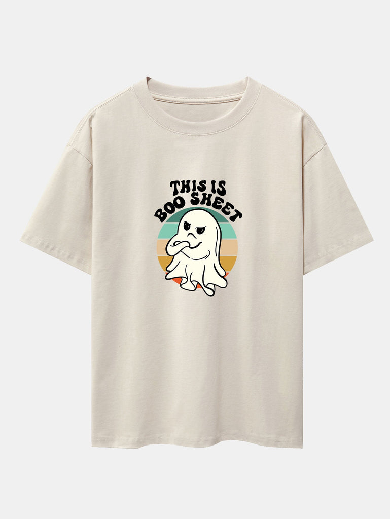 Ghost Slogan Print Drop Shoulder Oversize T-Shirt