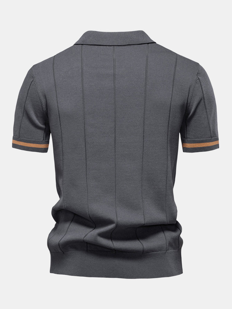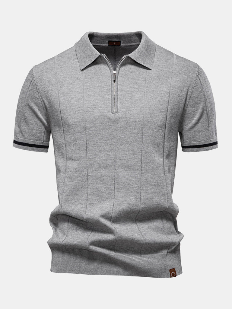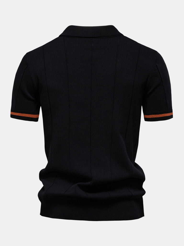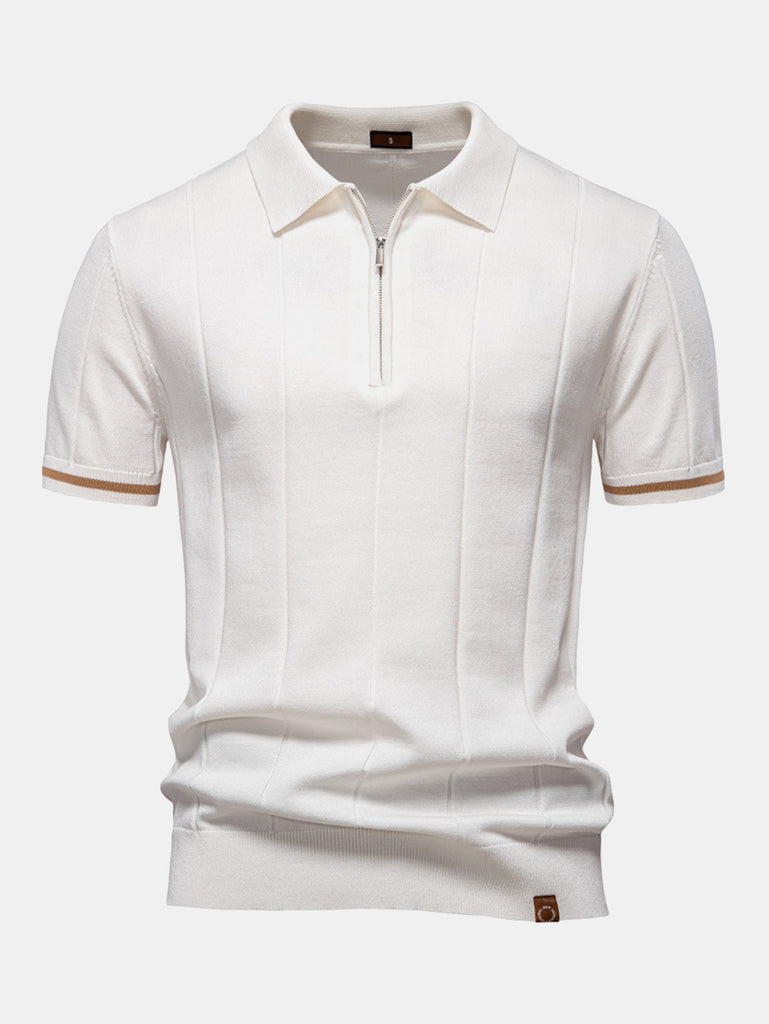 Designed with a timeless silhouette and elevated by sharp contrast trims at the cuffs, this polo offers a perfect blend of classic and contemporary. Made from soft, breathable knit fabric, it ensures a comfortable fit while maintaining a sharp, tailored appearance. The zip closure adds a sporty edge, making it perfect for both smart-casual outings and off-duty style.