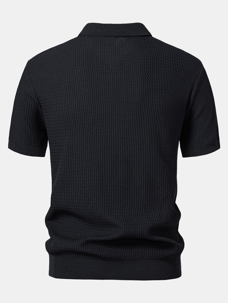 Crafted from soft, breathable knit fabric, this polo blends elevated design with everyday comfort. The jacquard weave creates a rich, tactile surface, while the classic collar and button placket keep the look refined. Perfect for casual outings or dressed-up weekends, it¡¯s a versatile piece with standout texture.