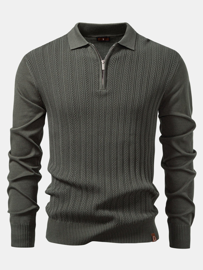 Twist Jacquard Knitted Zipper Polo Shirt