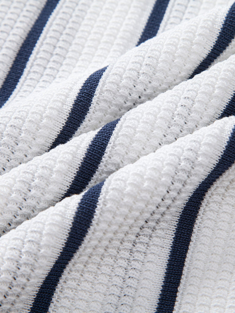 Upgrade your everyday look with this stripe knitted button up shirt, a perfect blend of vintage charm and modern comfort. The vertical stripes and breathable knit texture bring subtle sophistication to your casual wardrobe.