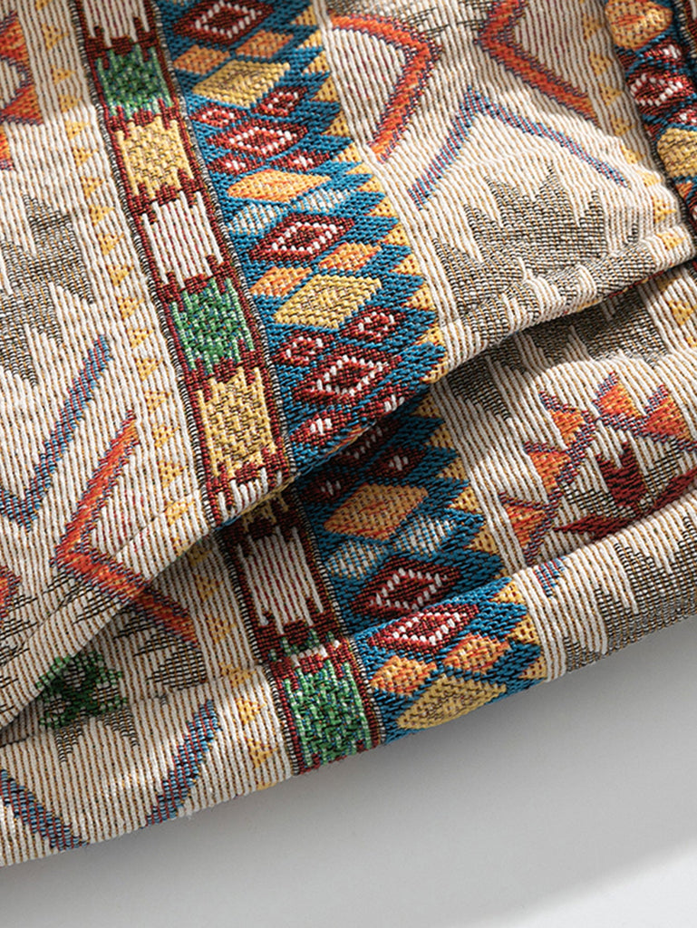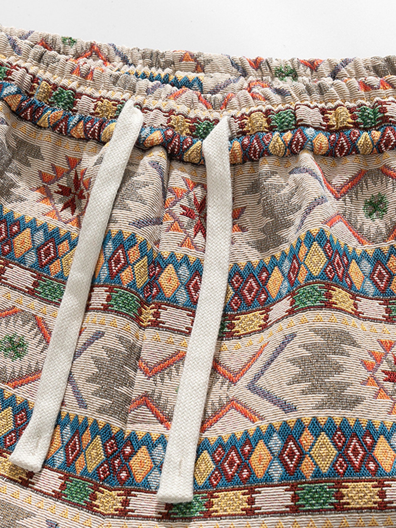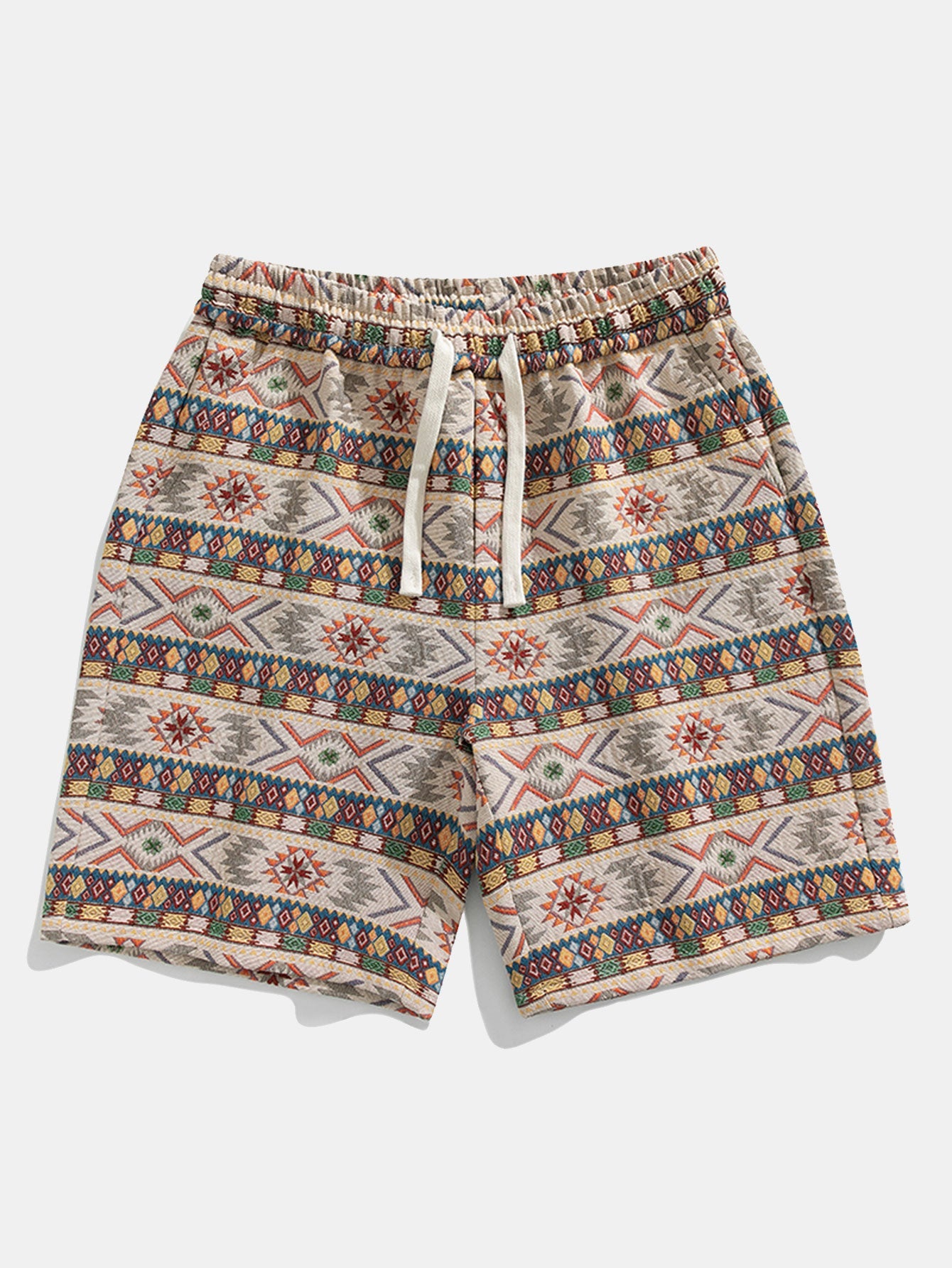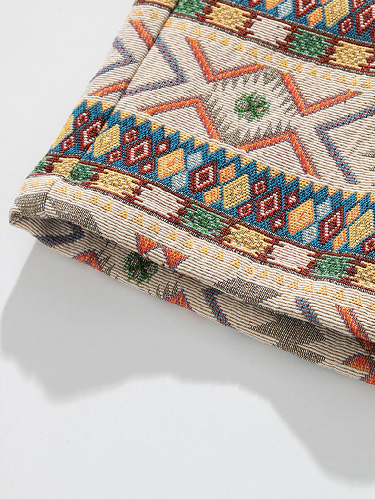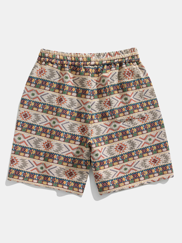 Ethnic Geometric Jacquard Drawstring Shorts