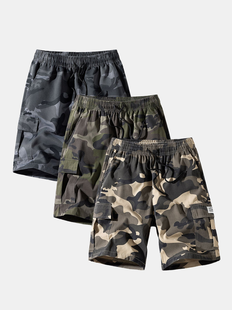 3 Pieces Camouflage Drawstring Cargo Shorts