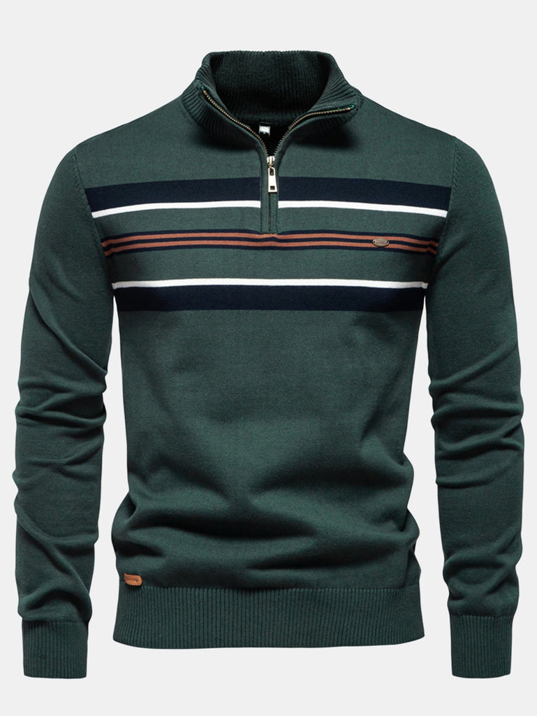 Man Stripe Half Zip Sweater