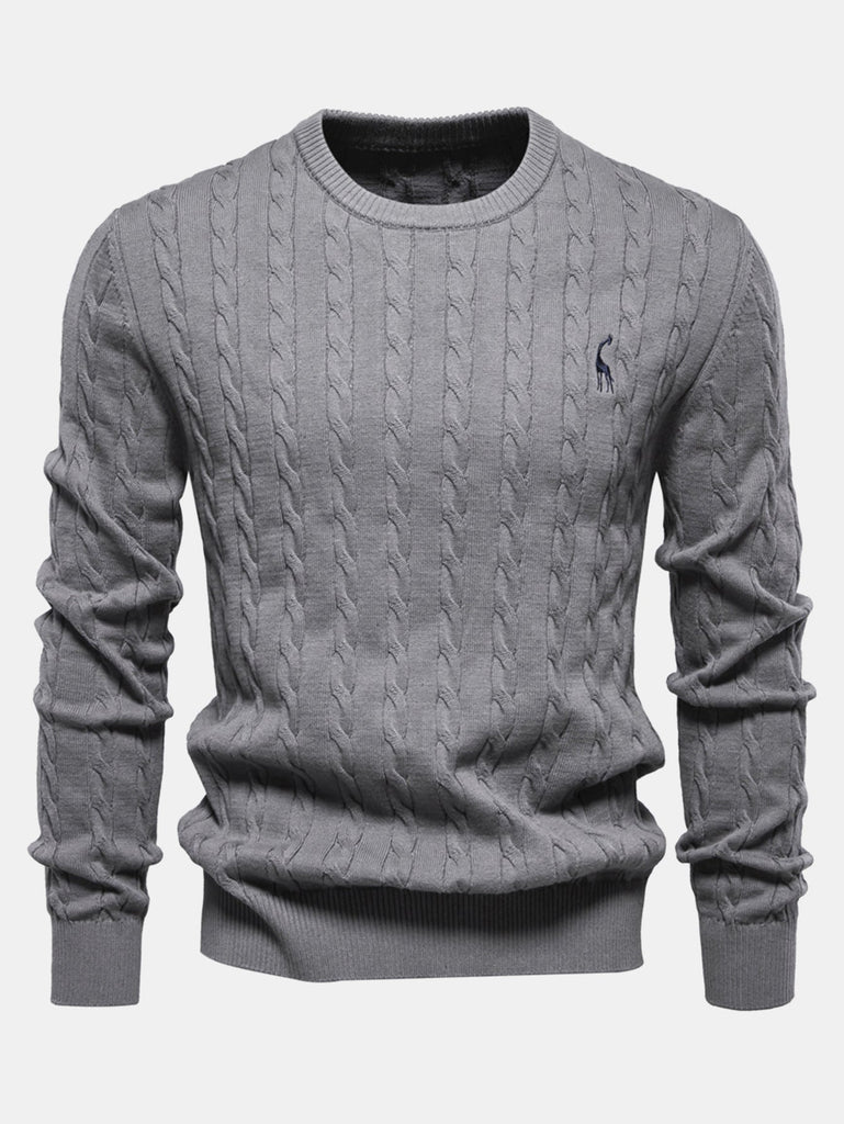 Giraffe Embroidery Twist Jacquard Sweater