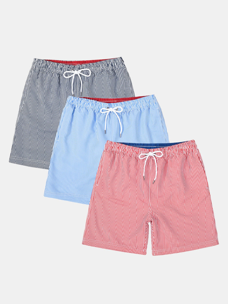 3 Pieces Vertical Striped Drawstring Swim Shorts