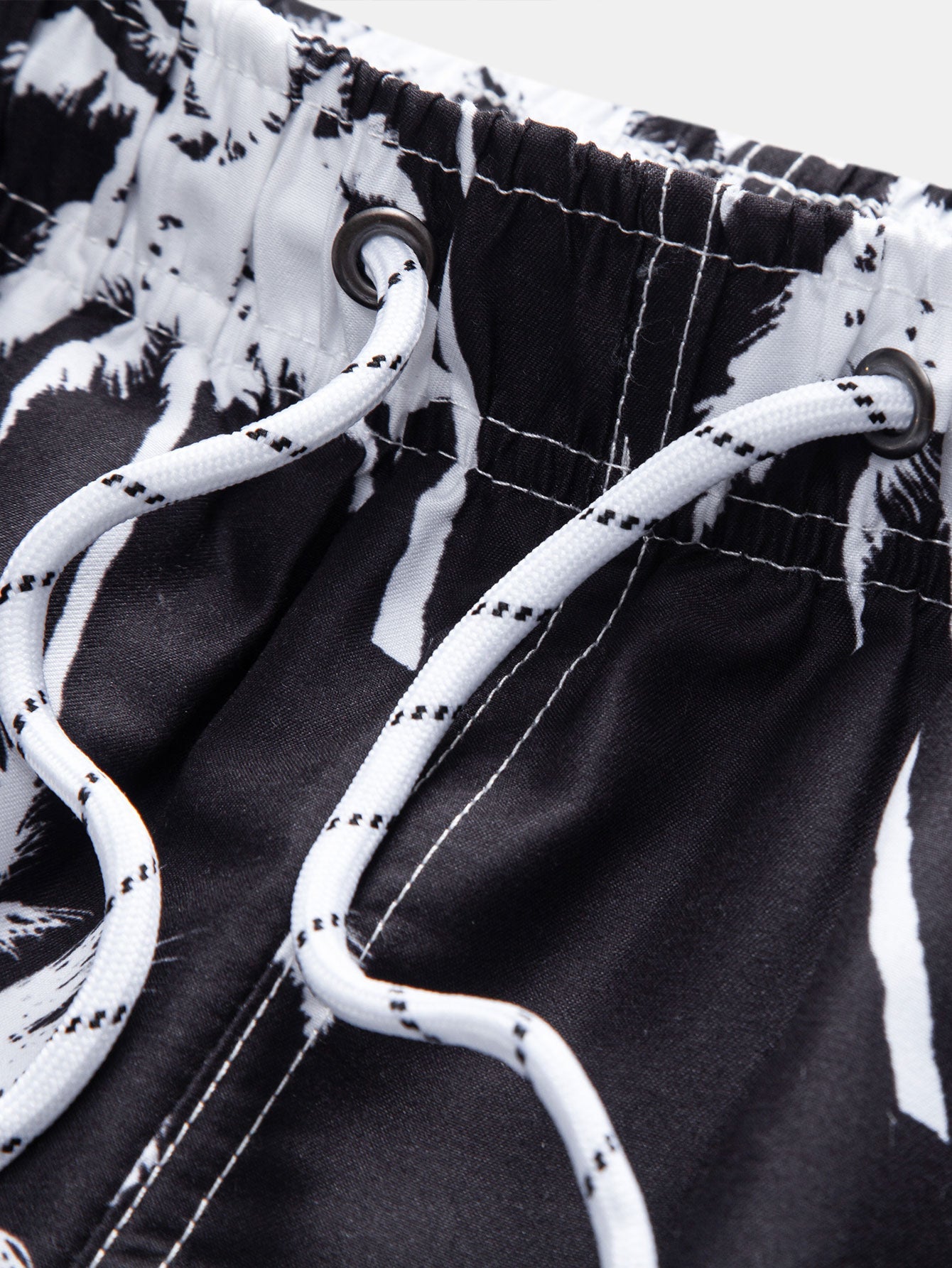 Add a splash of tropical style to your summer wardrobe with these palm tree print swim shorts. Featuring a relaxed fit, an adjustable drawstring waist, and breathable fabric, these shorts are perfect for everyday wear, lounging, or outdoor activities.