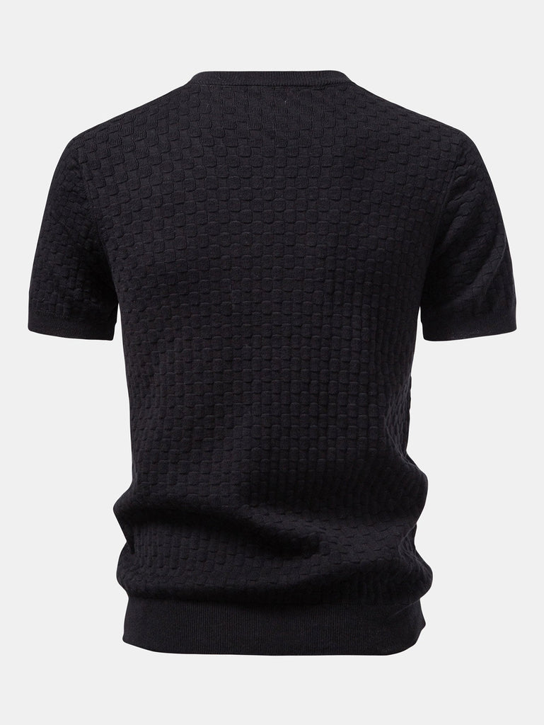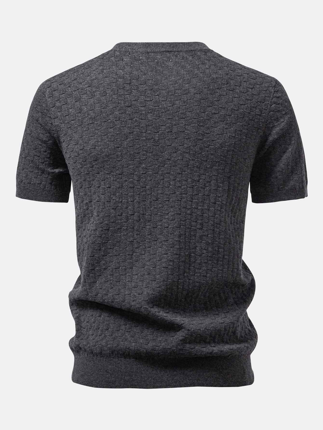 Checkerboard Henley Collar Sweater Knitted T-Shirt